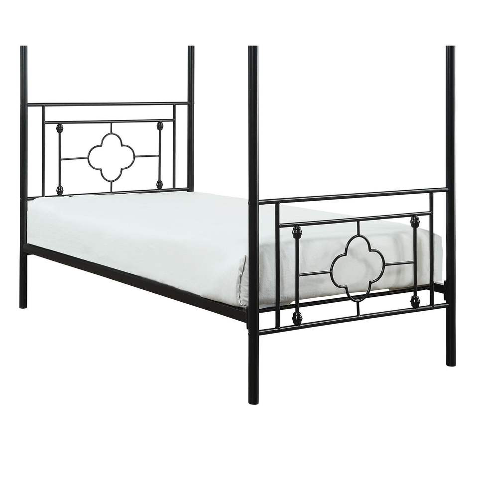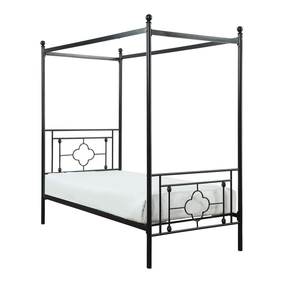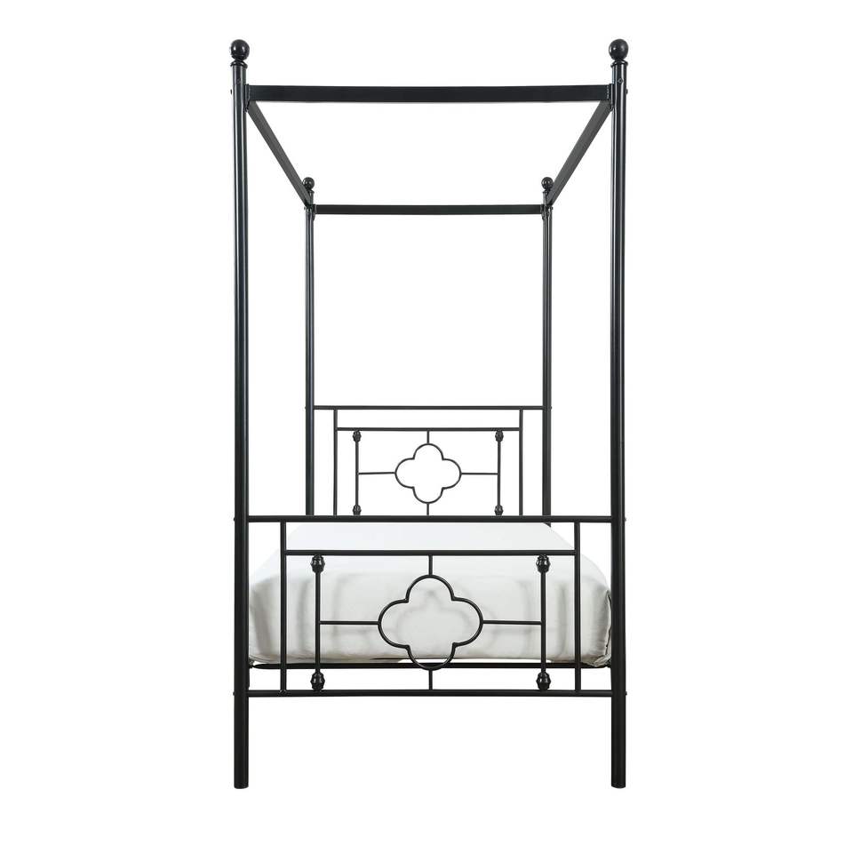 Letto a baldacchino singolo moderno tradizionale con piattaforma, struttura in metallo nero con finiture a sfera
