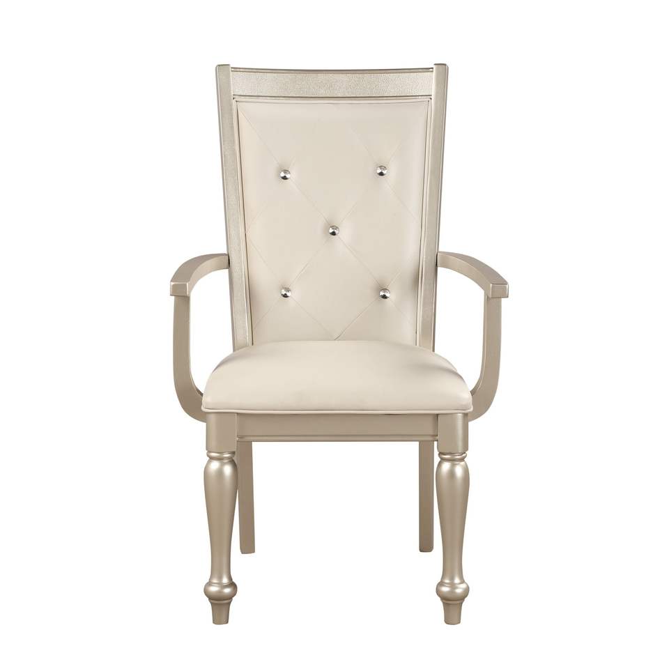 Set di 2 Sedie da Pranzo dal Design Moderno e Tradizionale, Finitura Argento con Braccioli Trapuntati e Seduta Imbottita con Bottoni in Cristallo