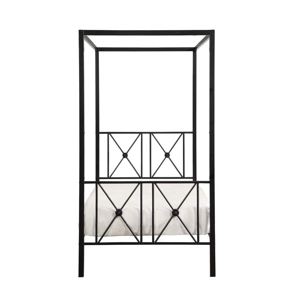 Letto a baldacchino moderno tradizionale con piattaforma singola, 1 pezzo, struttura in metallo nero