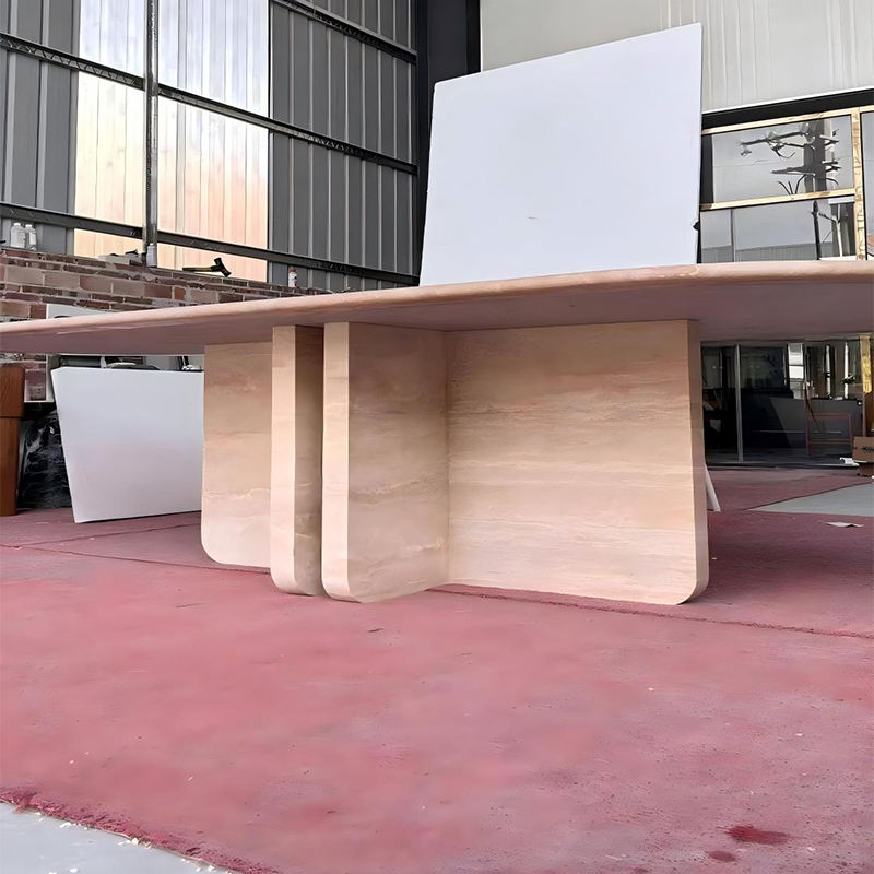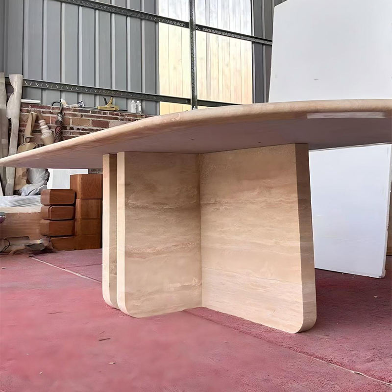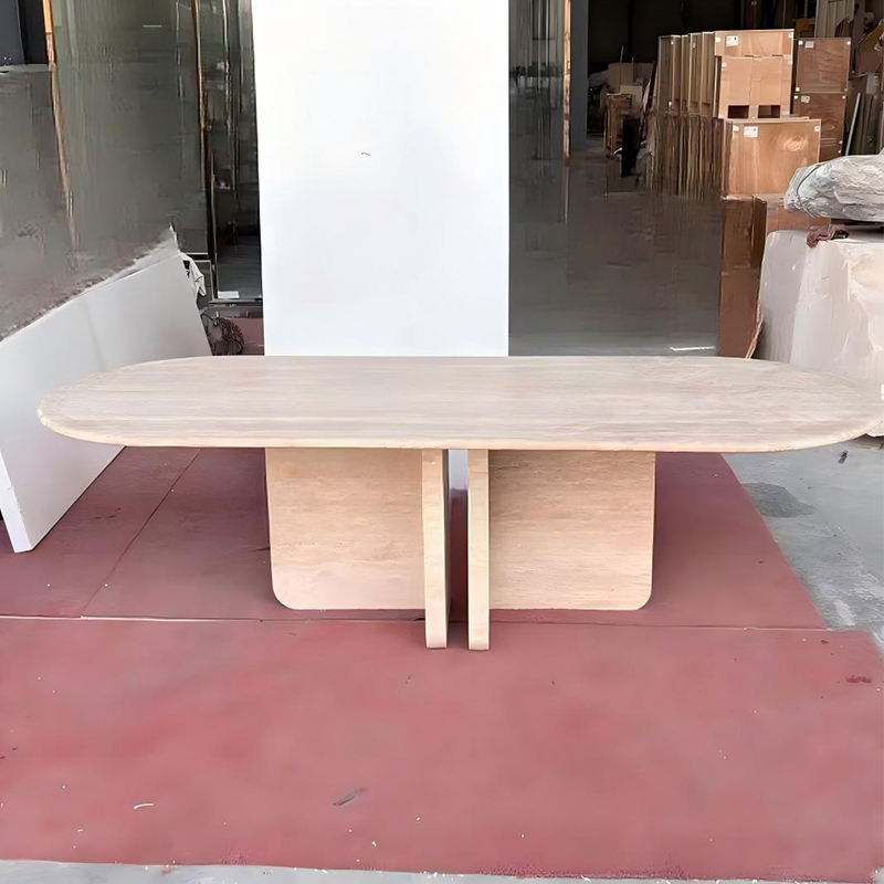 Tavolo da Pranzo Moderno in Travertino con Gambe a L Regolabili Design Portatile