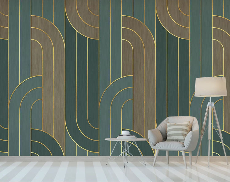 Modern Trendy Gold Lined Arch Mural Color Blocked Wallpaper for Bedroom Wall Panels for Contemporary Living