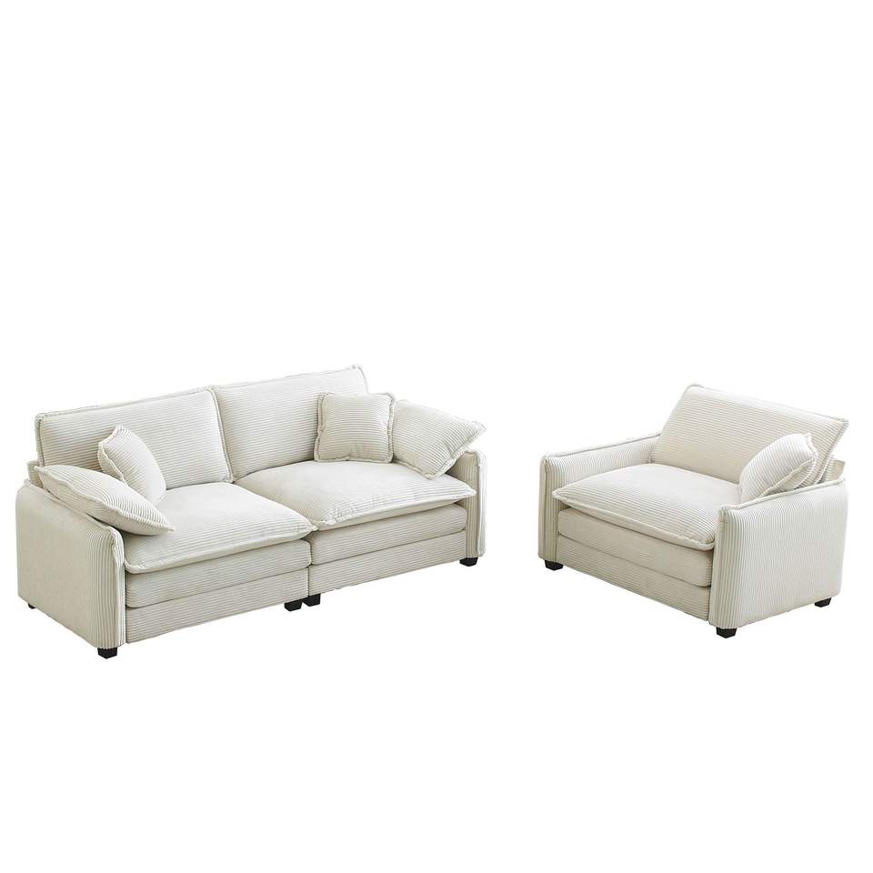 Set di Divani Moderni a Due Pezzi per Piccoli Appartamenti con Poltrona Singola dal Design Elegante