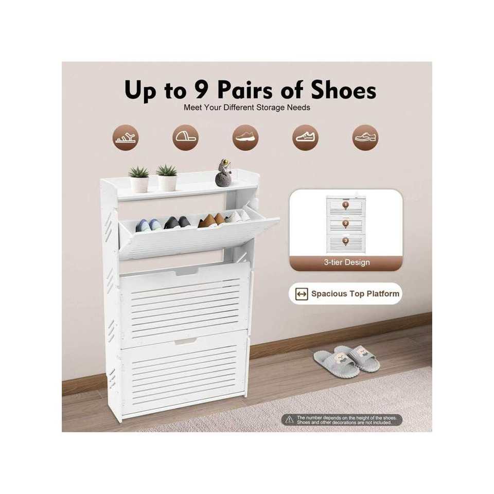Modern Ultra-Thin 3-Layer Shoe Rack Cabinet White Flip-Up Entryway Storage with Tipping Organizer for Entryway or Closet