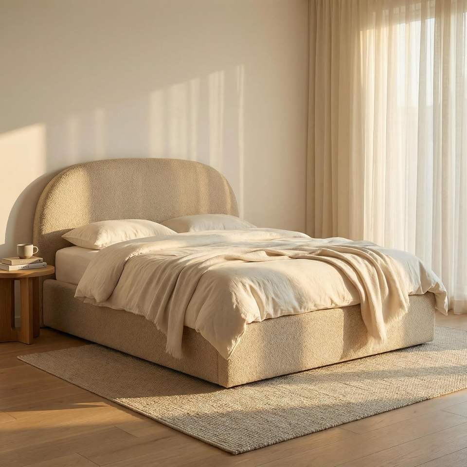Modern Upholstered Bed 140x200cm Storage Space Slatted Frame Velvet Cover Wooden Bed Frame 250kg Capacity Padded Headboard