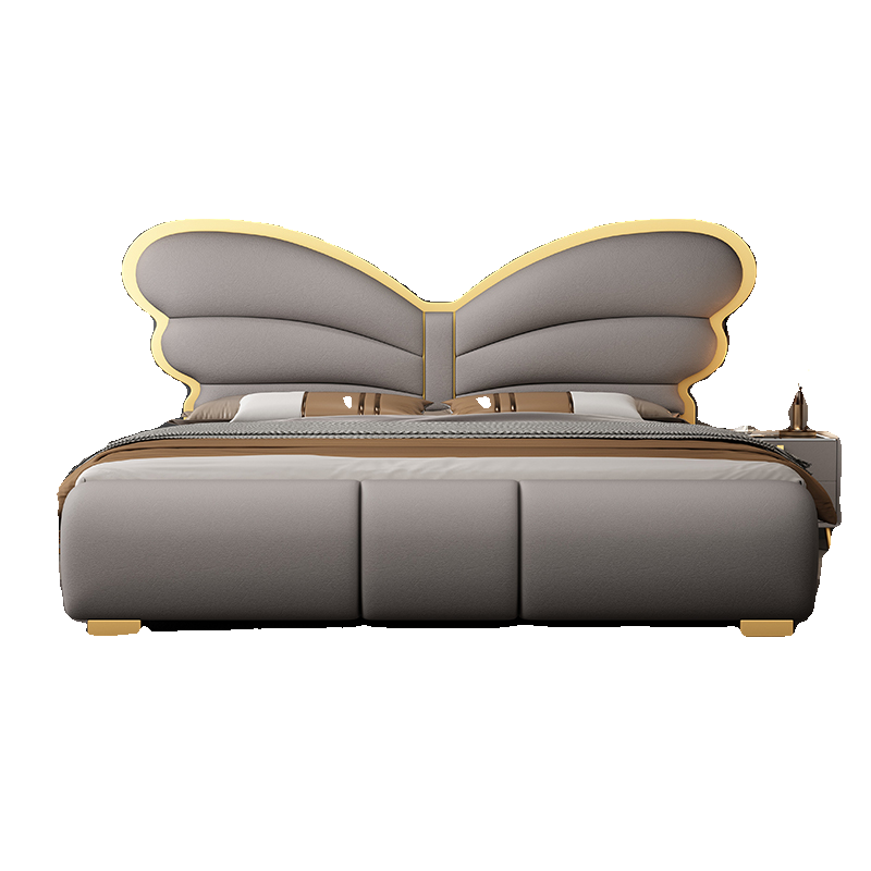 Letto imbottito moderno King Size in vera pelle, struttura in legno, contenitore, design confortevole, varie misure/colori, 1 pz