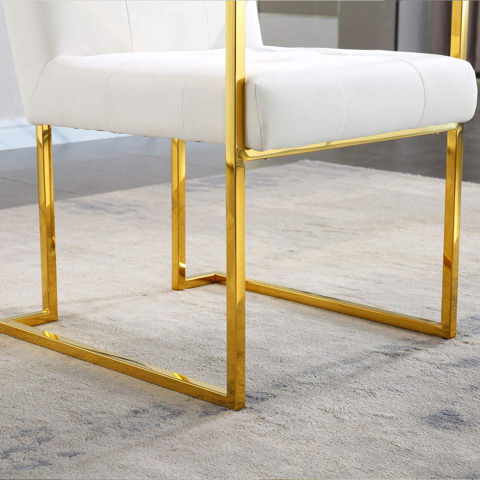 Sedia da Pranzo Moderna in Velluto con Braccioli, Design Trapuntato e Base in Acciaio Inox Dorato, Set da 1 Pezzo