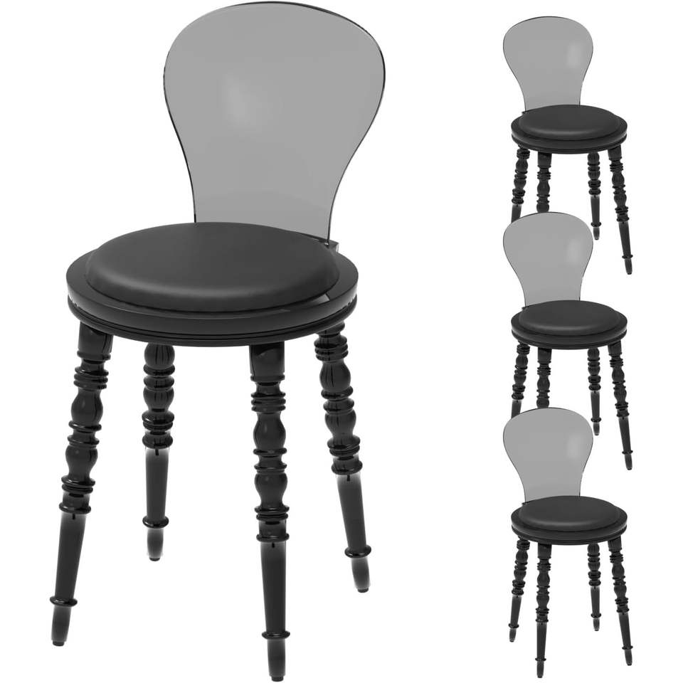 Sedie da Pranzo Moderne Vintage in PP Bianco con Cuscini Neri per Cucina, Casa e Ufficio