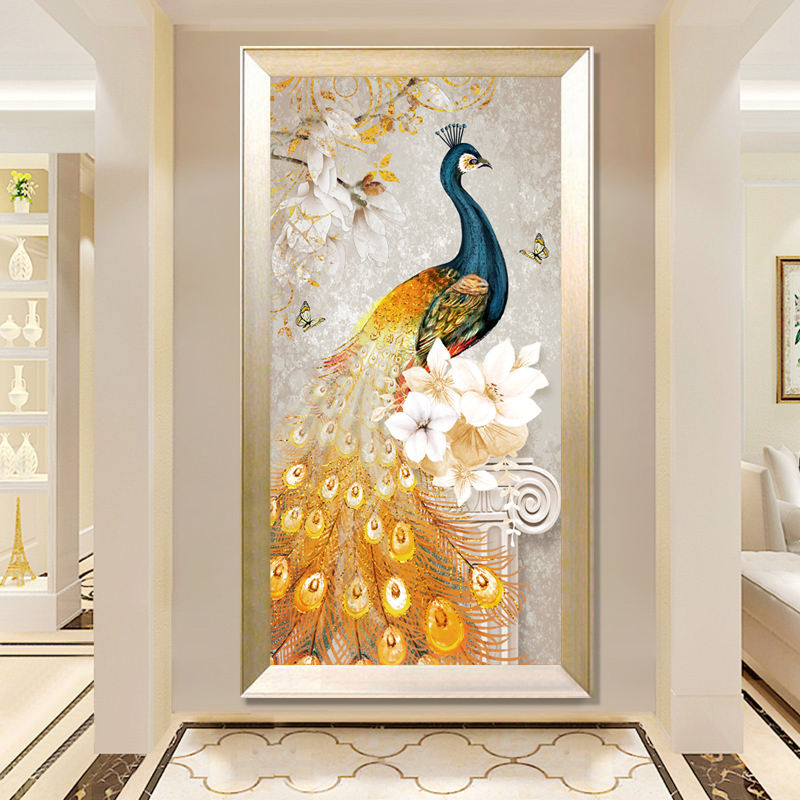 Arte Murale Moderna Decorazione Casa Dipinto Fai-da-Te Pavone Dorato Pittura Diamante