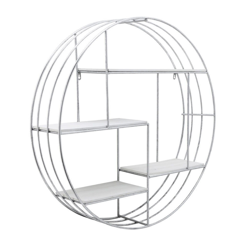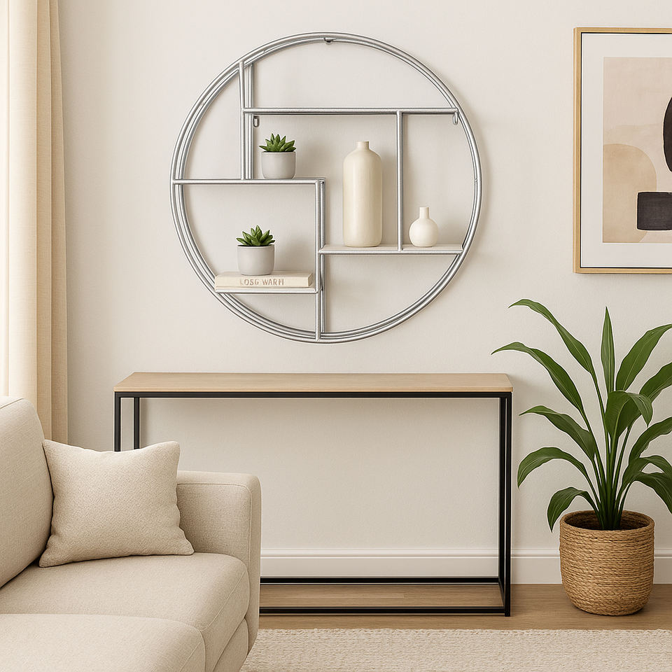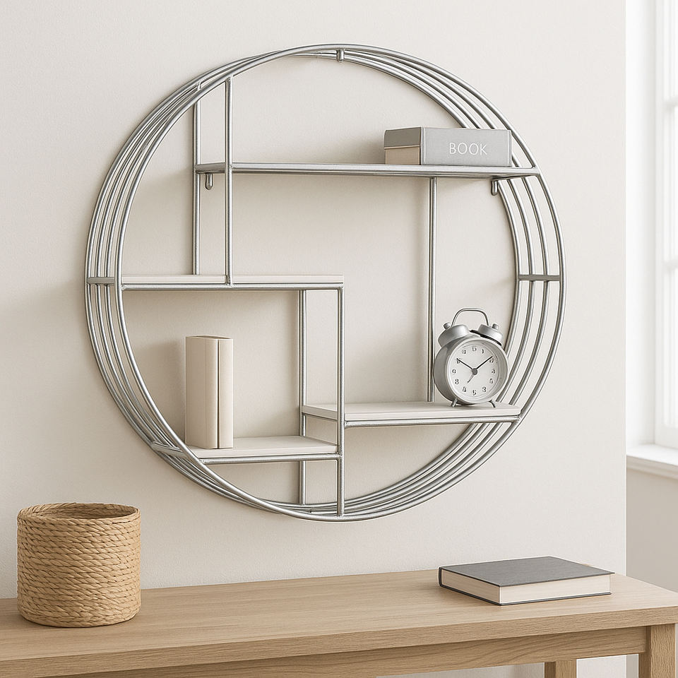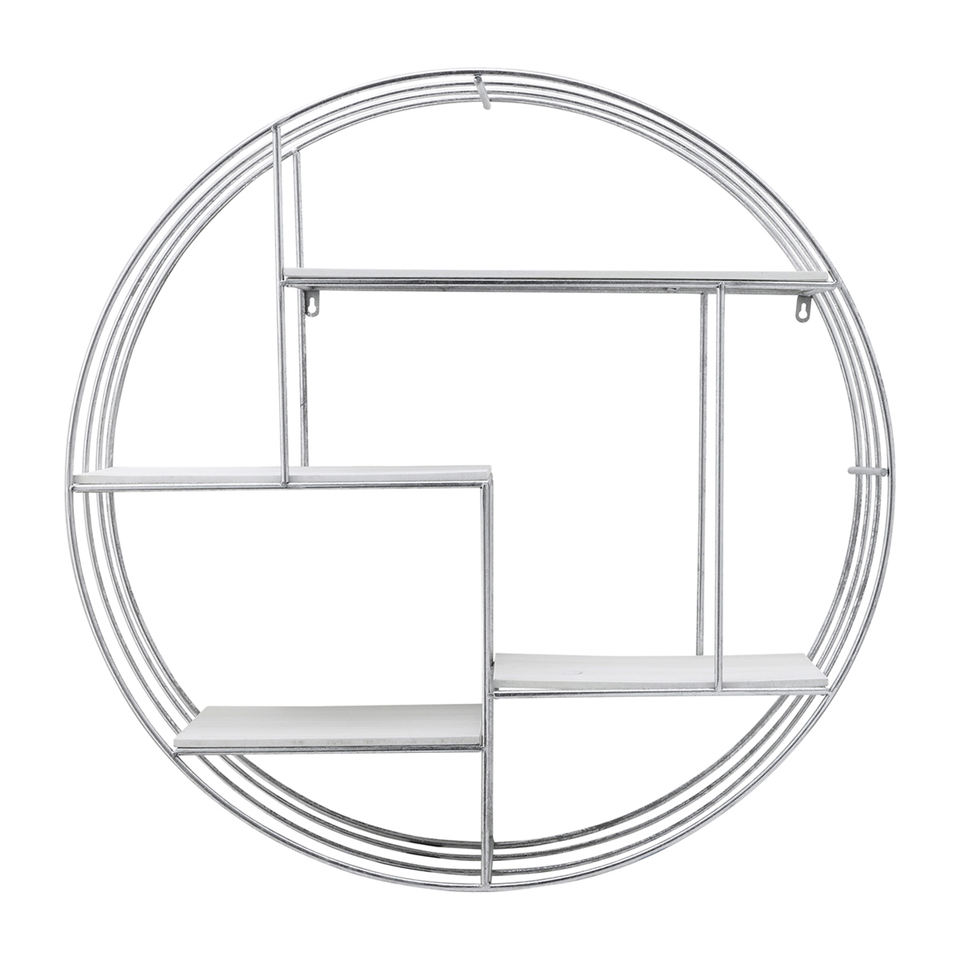 Mensola Moderna da Parete Rotonda 32 Pollici Argento e Bianco, Scaffale a Tre Livelli Bianco per Soggiorno