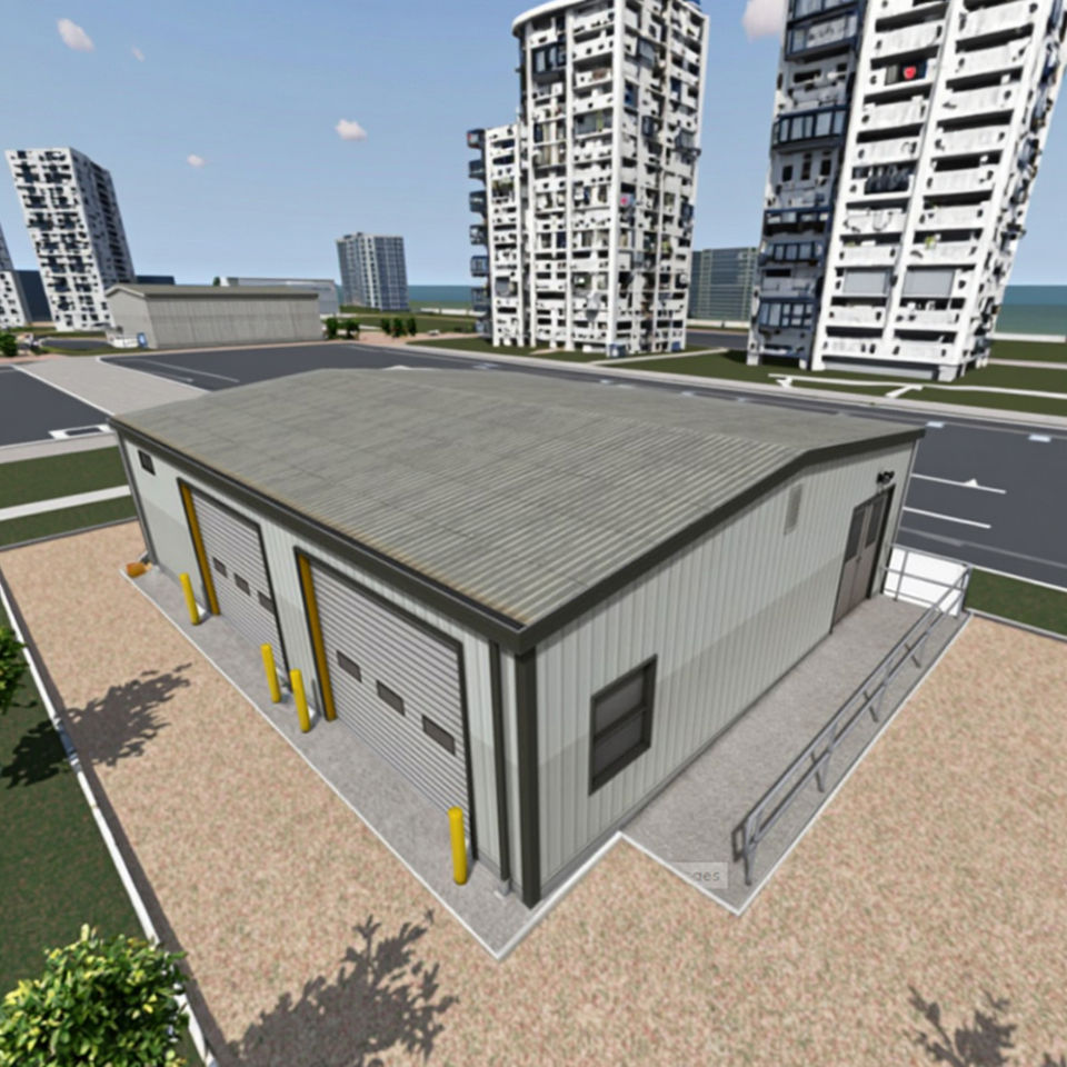 Planimetria Architettonica Moderna per Magazzino, Hangar/Ufficio in Acciaio, Disegni Tecnici con Superficie Zincata a Caldo per Hotel