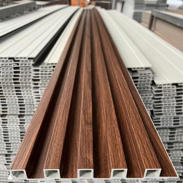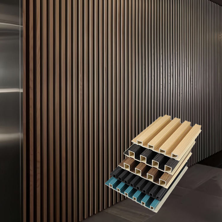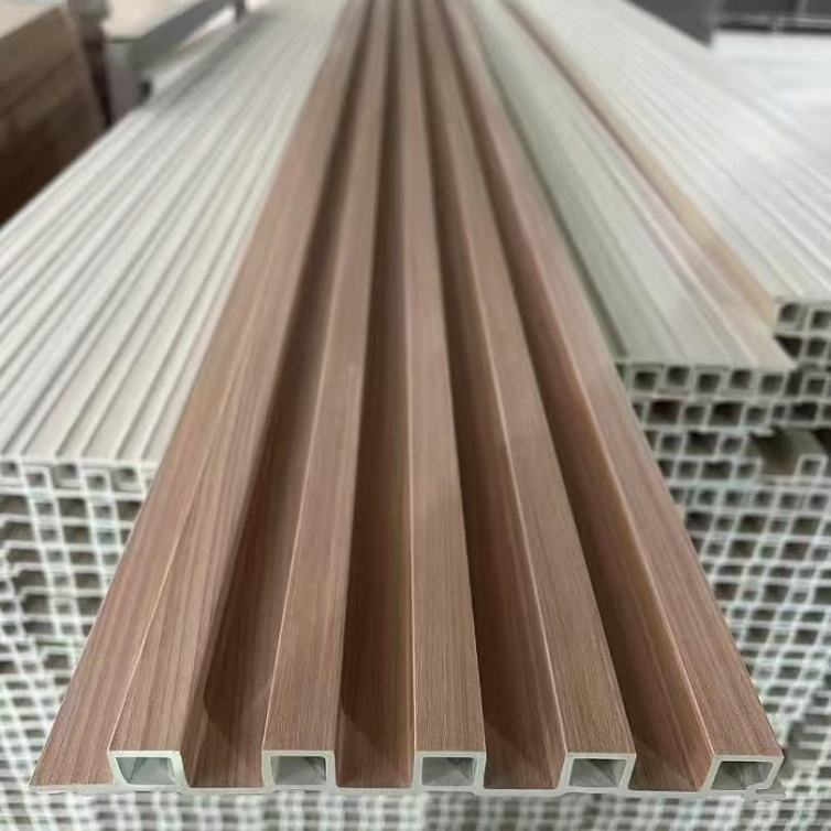 Moderno WPC WPC in PVC scanalato pannello di legno striscia di legno griglia boiserie per soggiorno camera da letto Hotel pareti interne