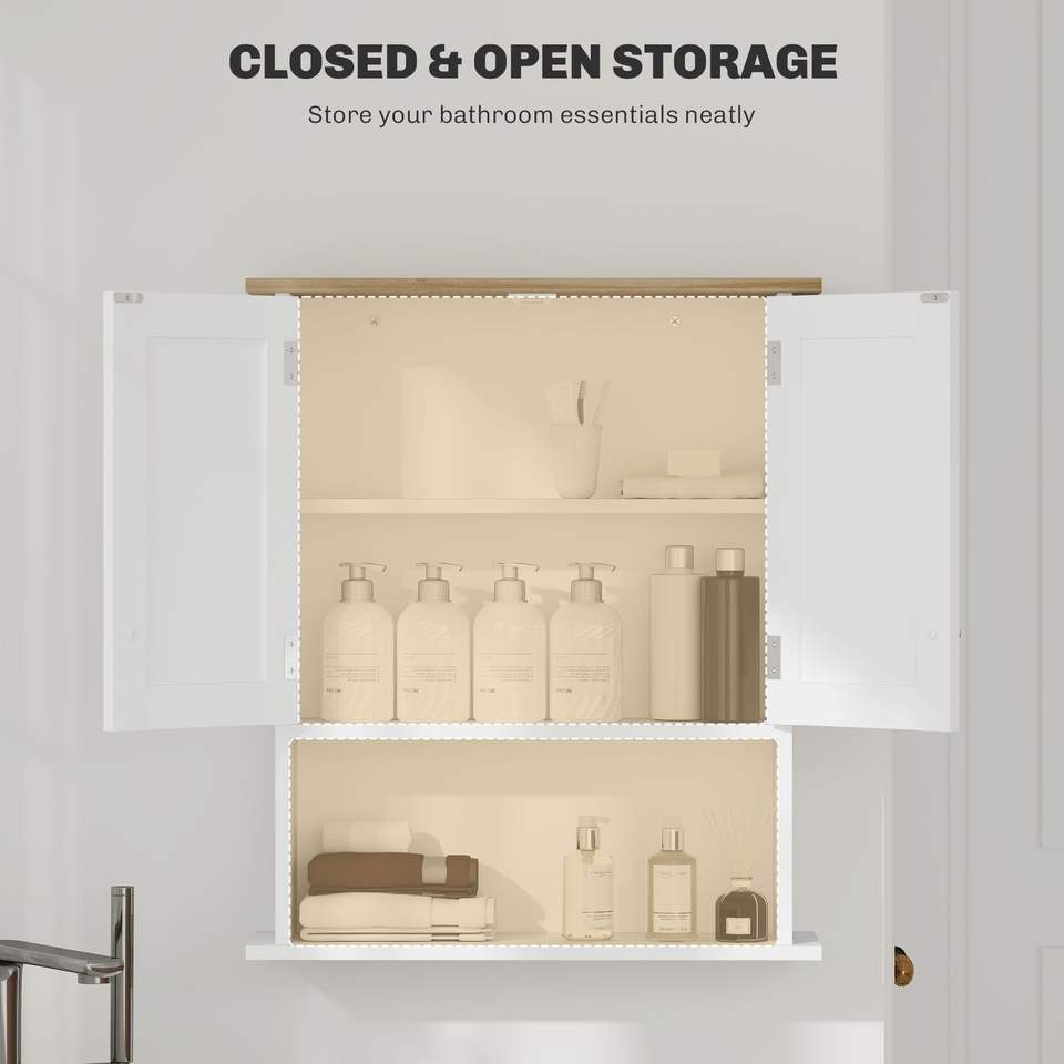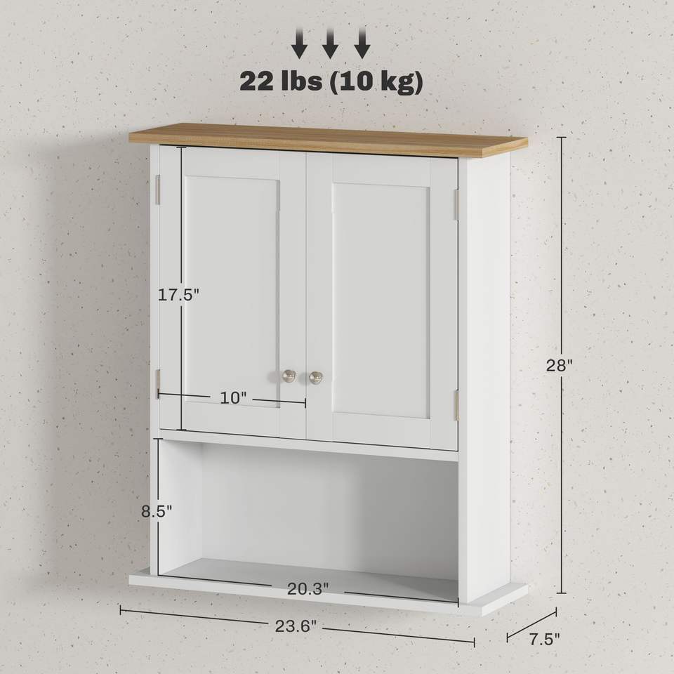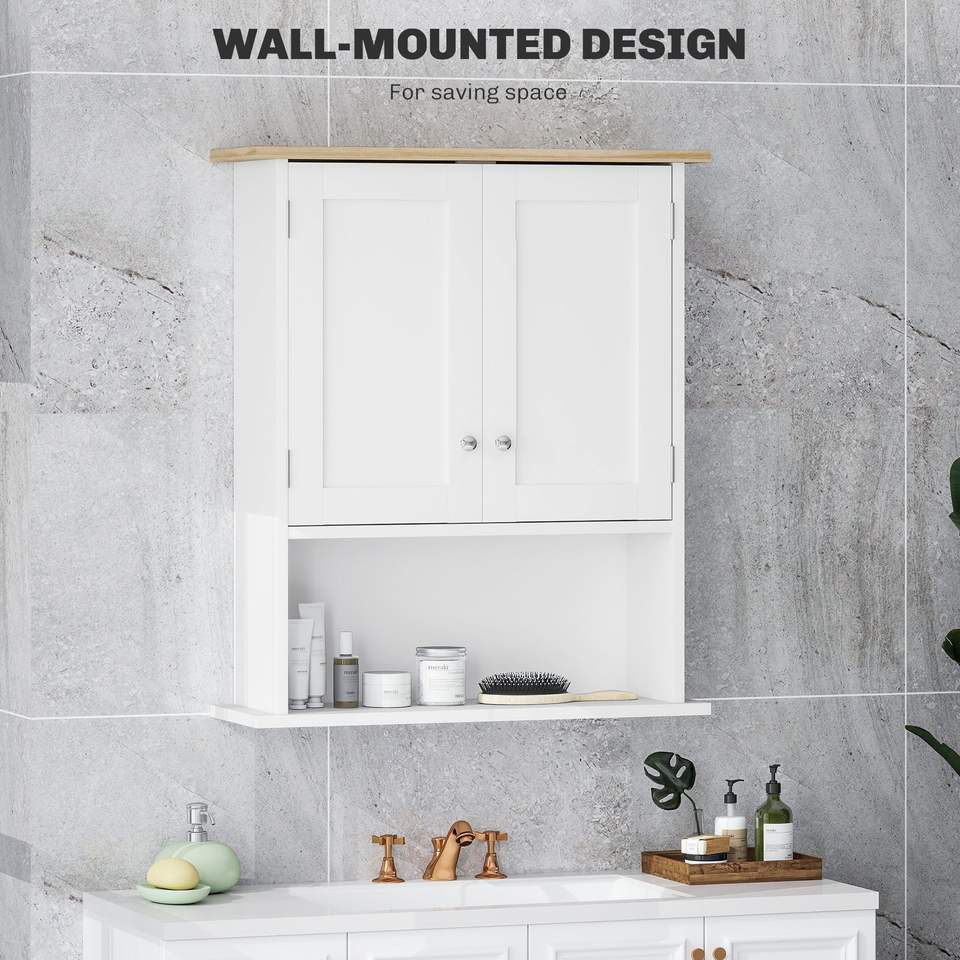 Mobile Bagno Moderno Bianco a 2 Ante da Parete con Ripiano Regolabile - Soluzione Contemporanea per l'Organizzazione del Bagno