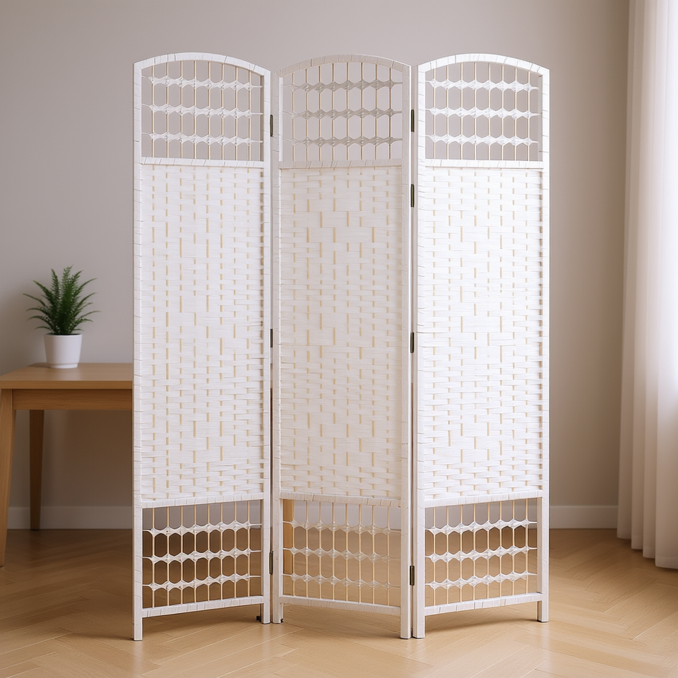 Modern White 3 Panel Folding Room Divider Fiber Woven Privacy Screen Partition Wall for Home Office Spaces