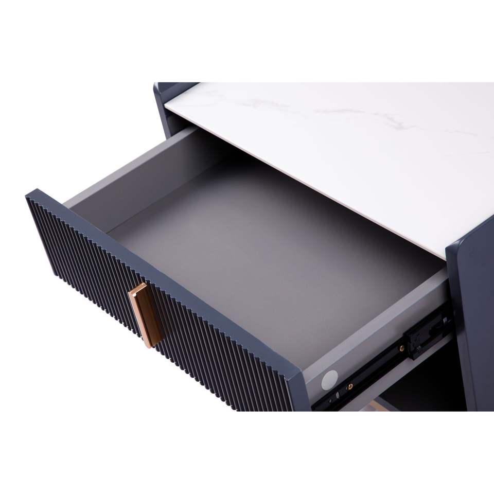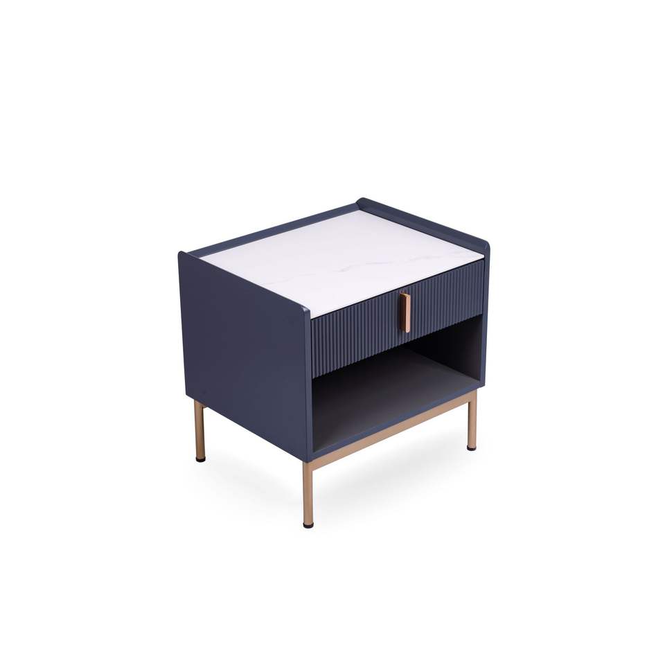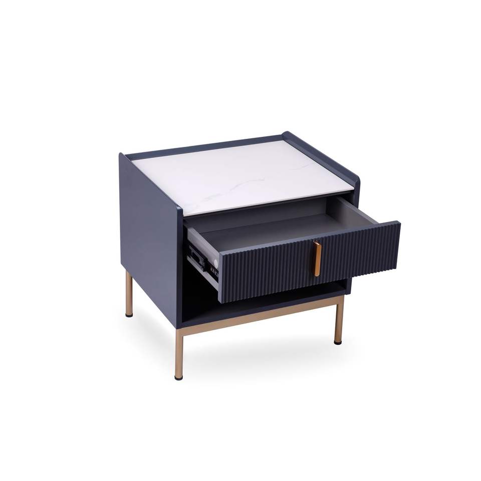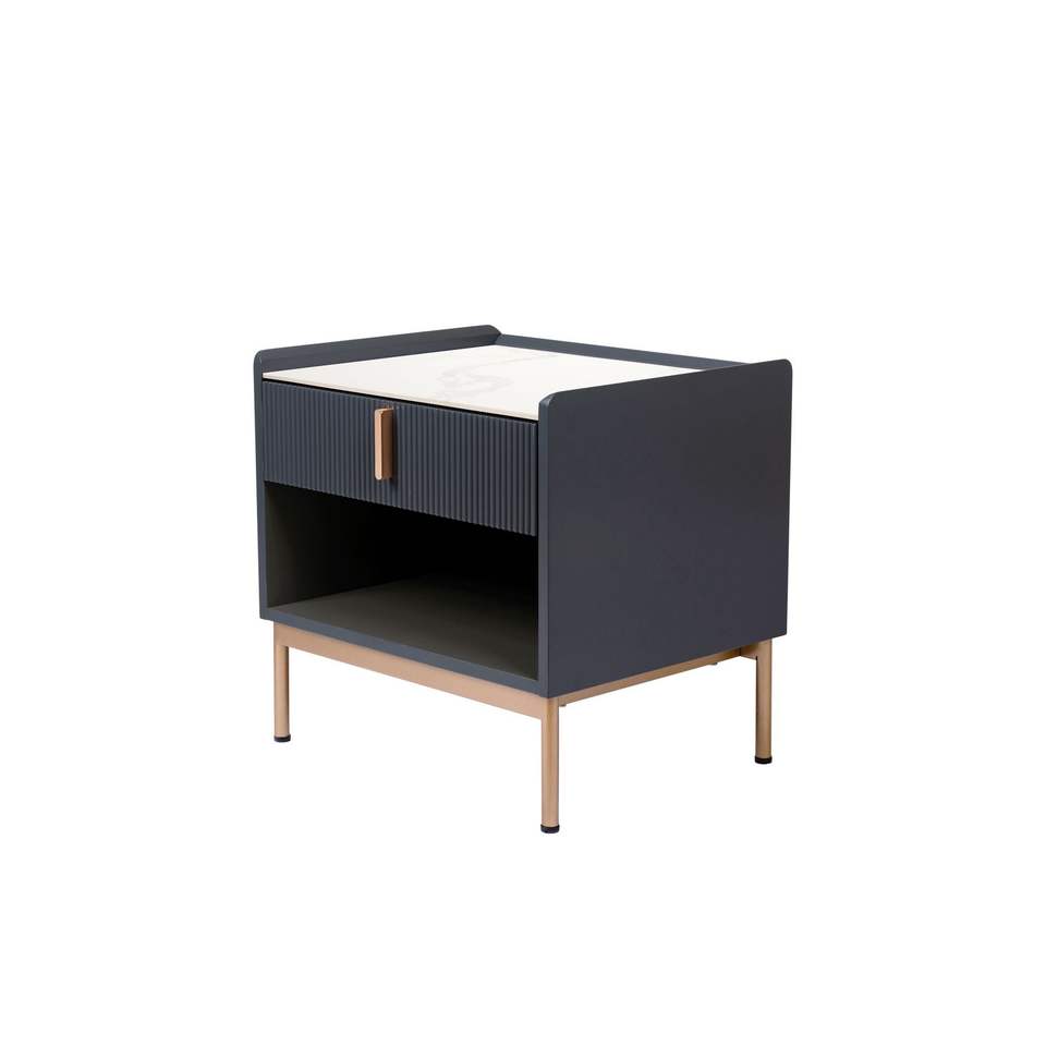 Tavolino o Comodino Moderno Bianco/Grigio con Struttura Dorata e Piano in Pietra