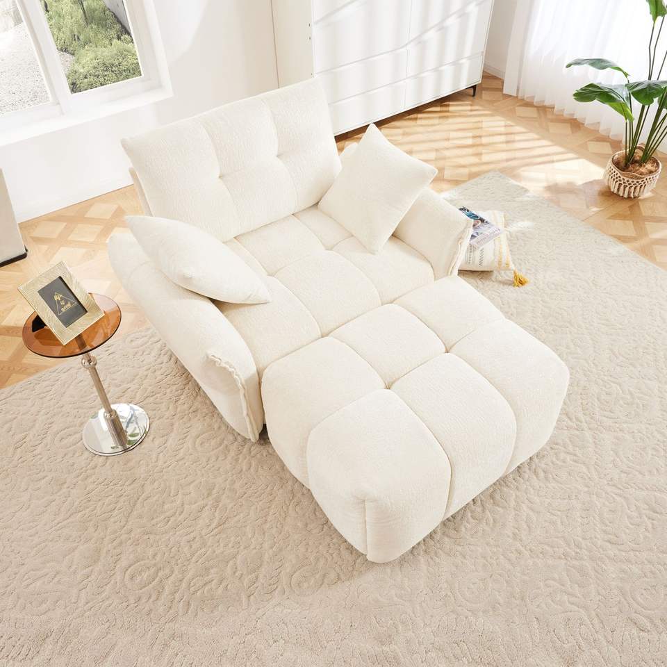 Modern White Lounge Chair High-Resilience Support Cushions Easy Assembly Ergonomic Single Seater Ottoman for Living Room Office