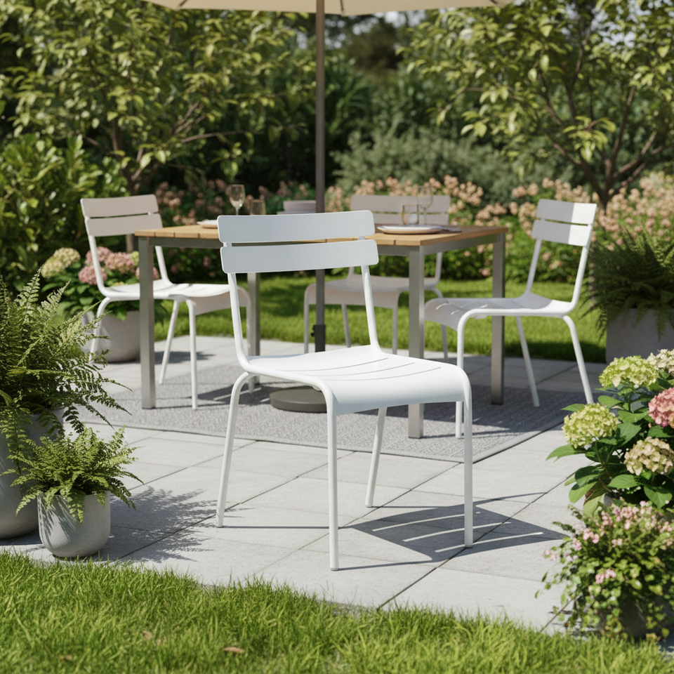 Sedia da pranzo moderna in metallo bianco per esterni