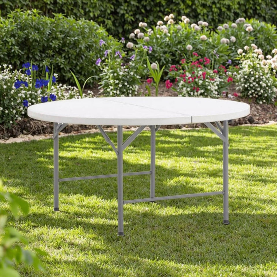 Modern White Round Plastic Folding Tables and Chairs Banquet Wedding Event Furniture for Hotels Hospitals Entry and Bedroom