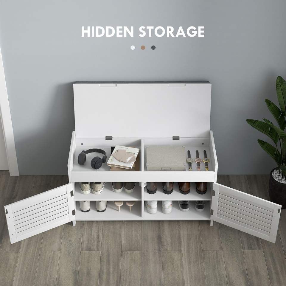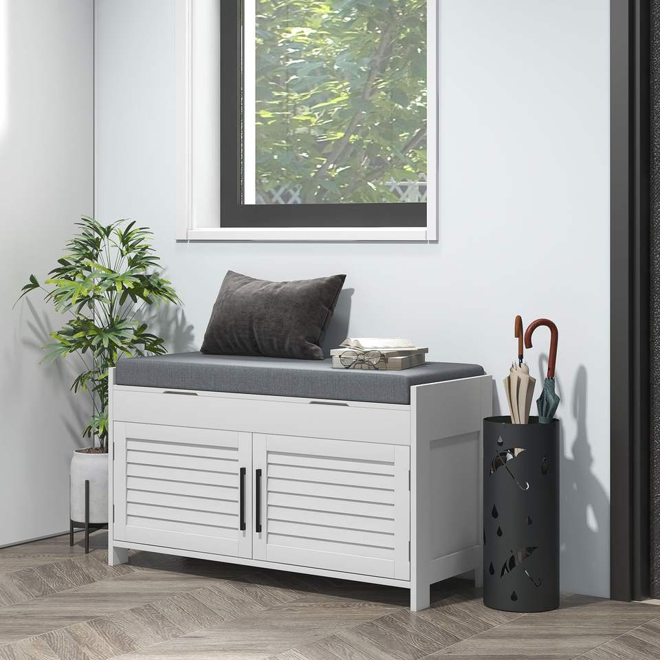 Moderna panca portaoggetti per scarpe bianche con cuscino con ripiani regolabili a scomparti nascosti porte per ingresso camera da letto mobili
