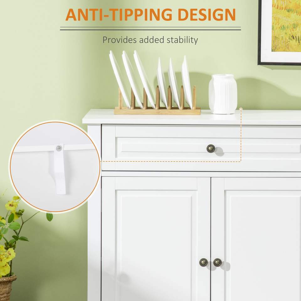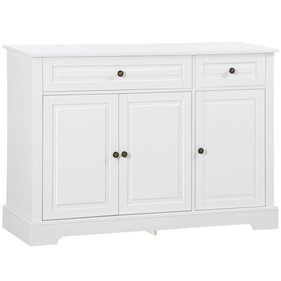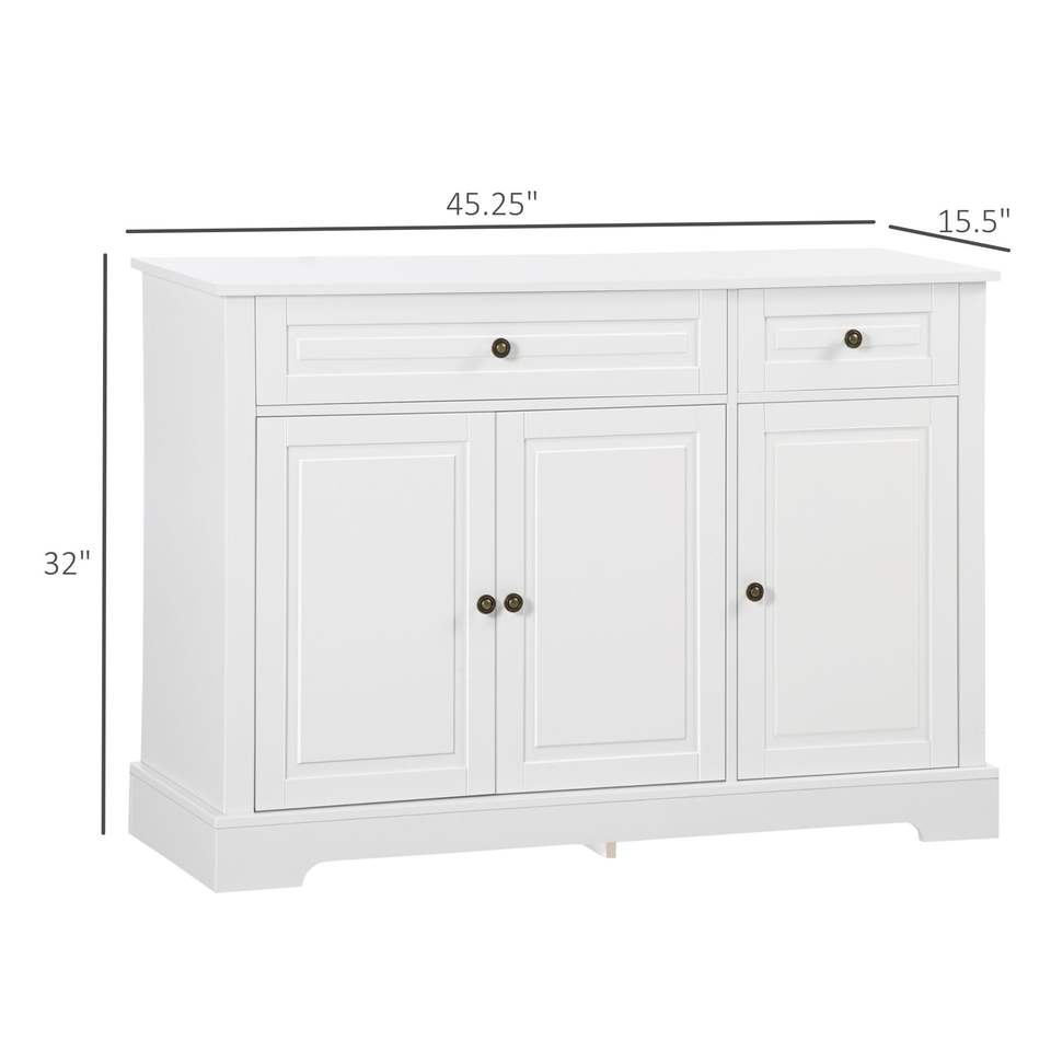 Credenza Moderna Bianca con 2 Cassetti e Ripiani Regolabili per l'Ingresso