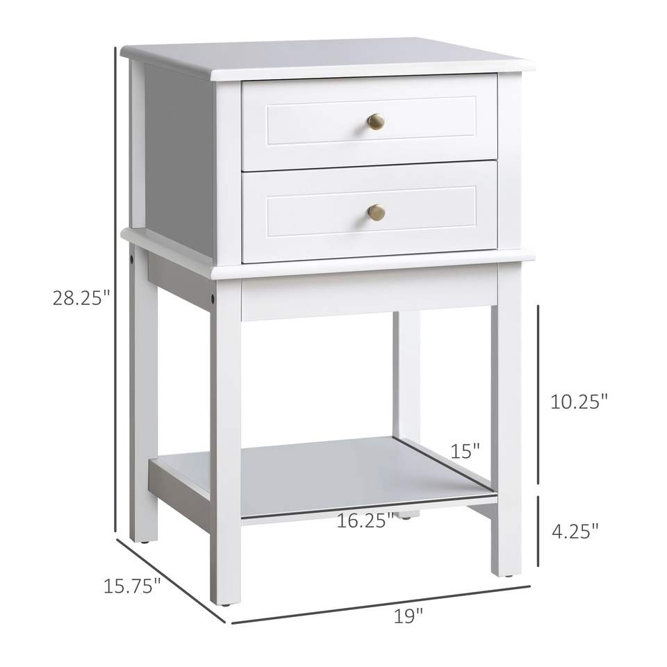 Modern White Sofa Side Table with Storage Drawers and Shelf for Living Room Bedroom Furniture