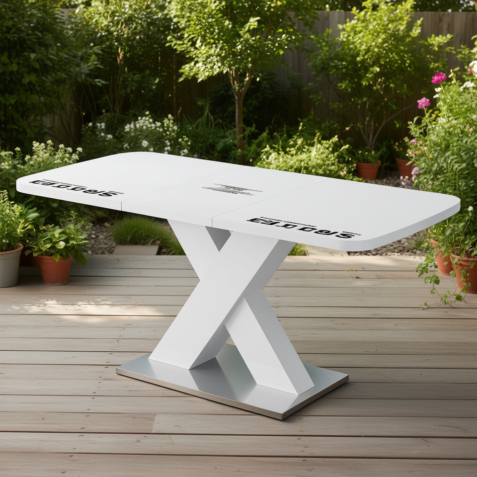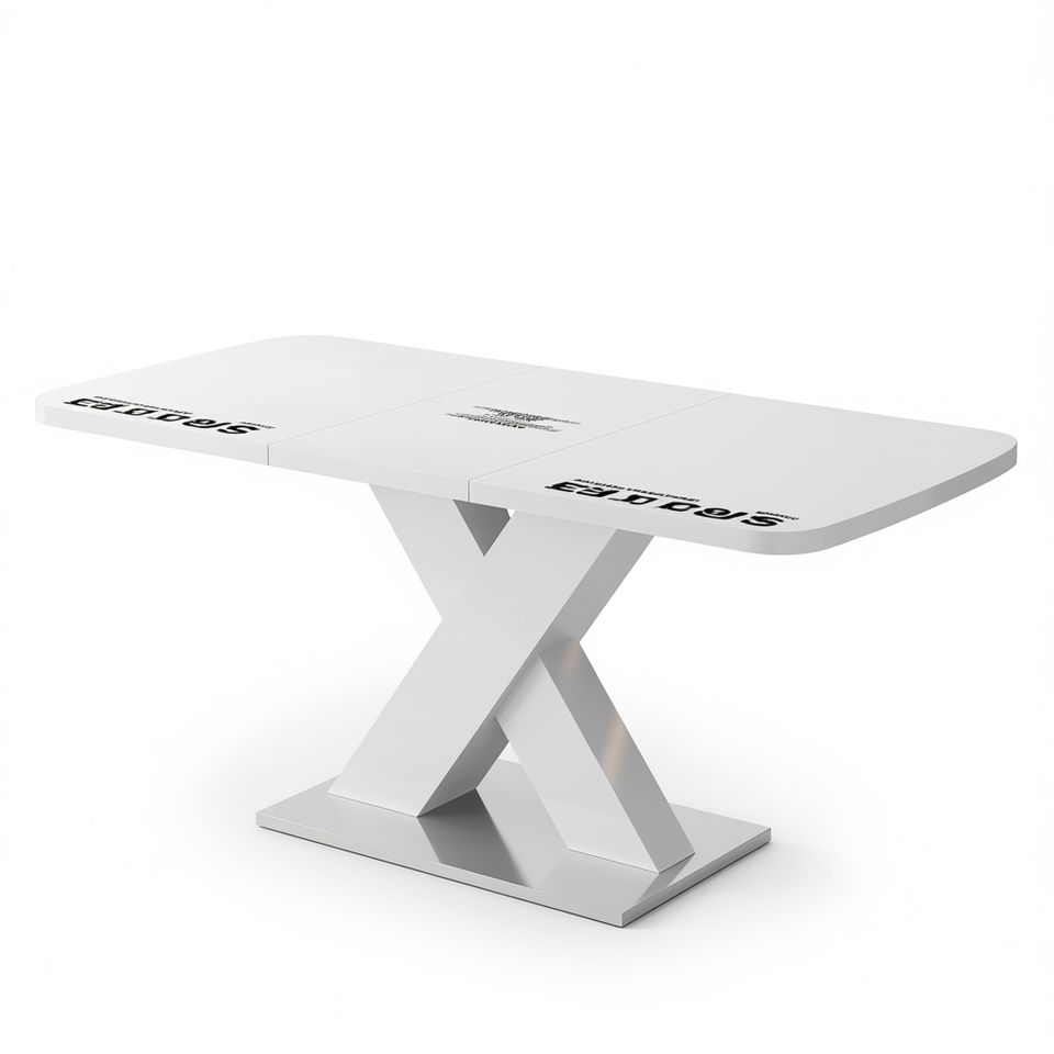 Tavolo da Pranzo Moderno Bianco Quadrato con Piano Allungabile, Gambe a X in MDF, Base in Metallo, Comodo ed Elegante Arredamento per la Casa