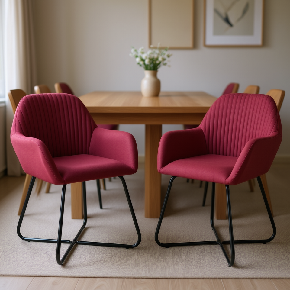 Modern Wine Red Fabric Dining Chairs With Metal Legs Upholstered Design For Home Furniture