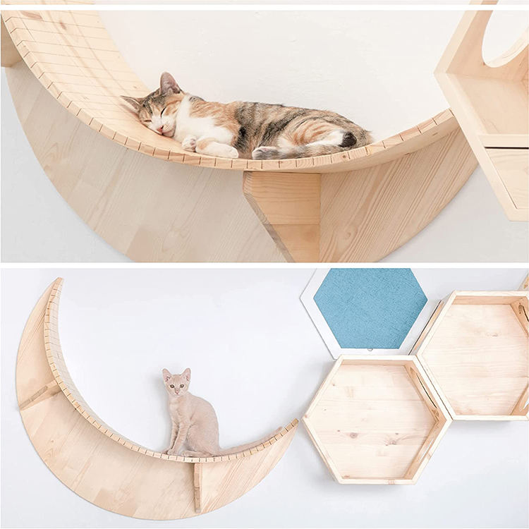 Moderno centro di attività del gatto in legno torre a forma di luna struttura per arrampicata gatto con lana di Sisal materiali montati a parete per gatti Tunisia