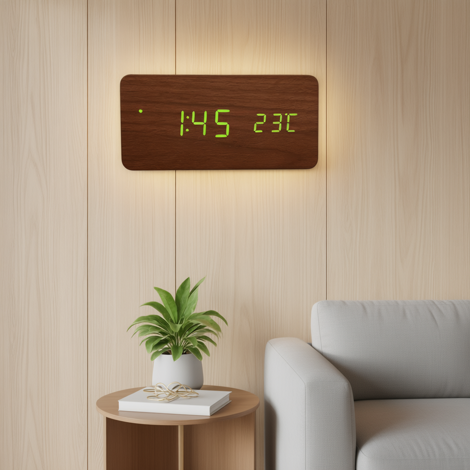 Orologio da Parete Moderno in Legno con Display Digitale LED, Alimentato a Corrente, Decorazione per Casa e Camera da Letto, Modello Standard a Singola Faccia
