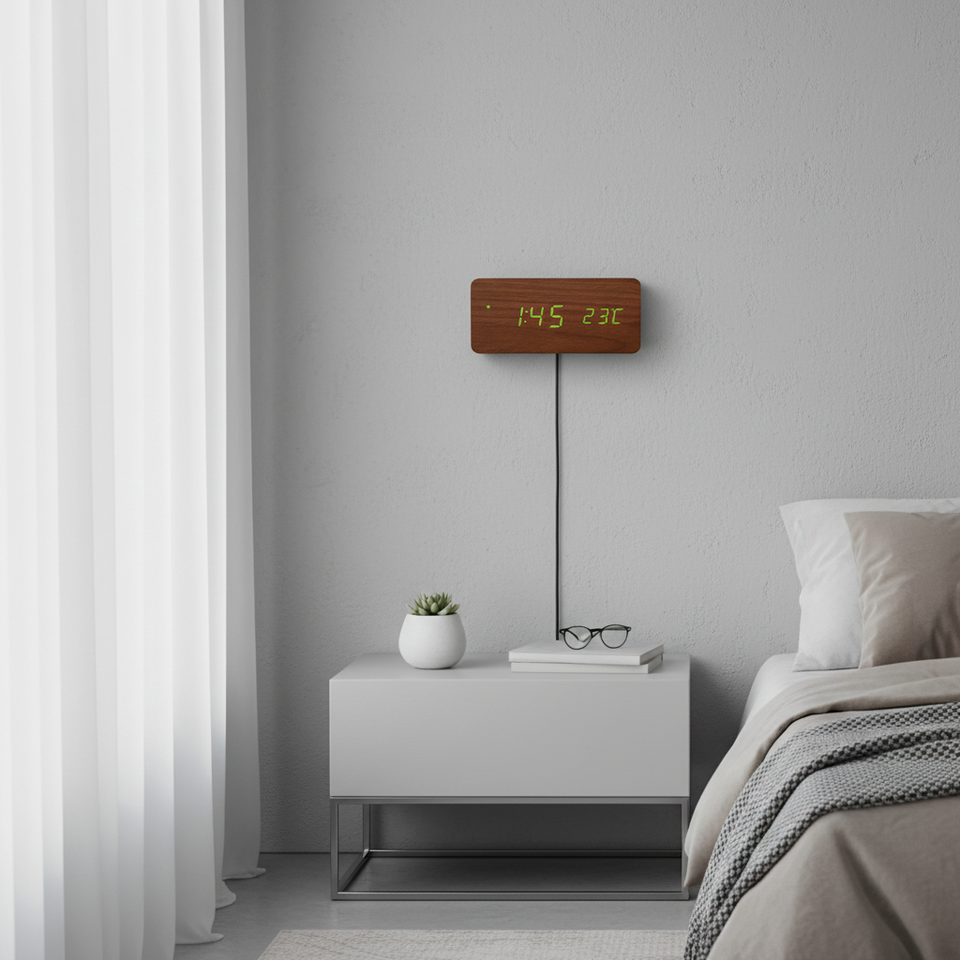 Modern Wooden Wall Clock Led Digital Display Rectangular Electric Plug Powered Home Decor Bedroom Clock Standard Single Face