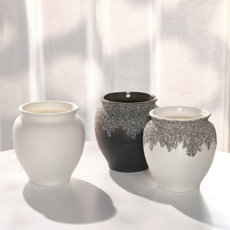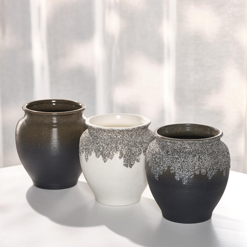 Moderno e minimalista decorazione per la casa vaso in ceramica creativa con motivi spazzolati fiori secchi acqua alzata composizione floreale Gif