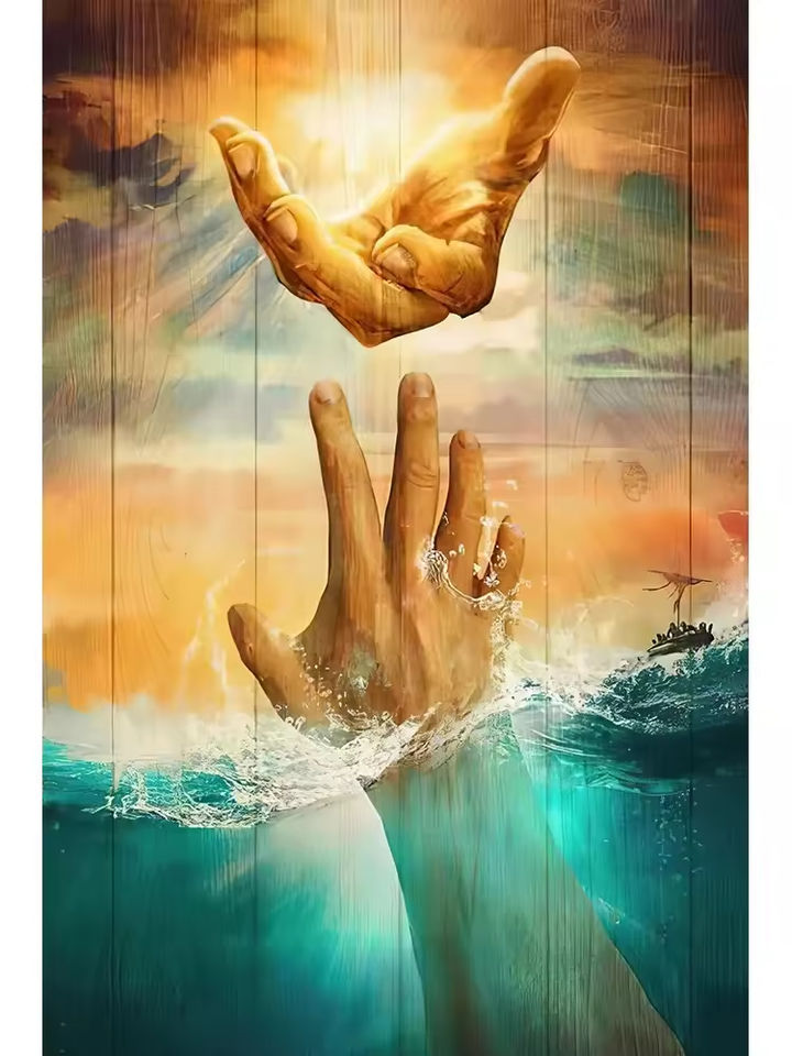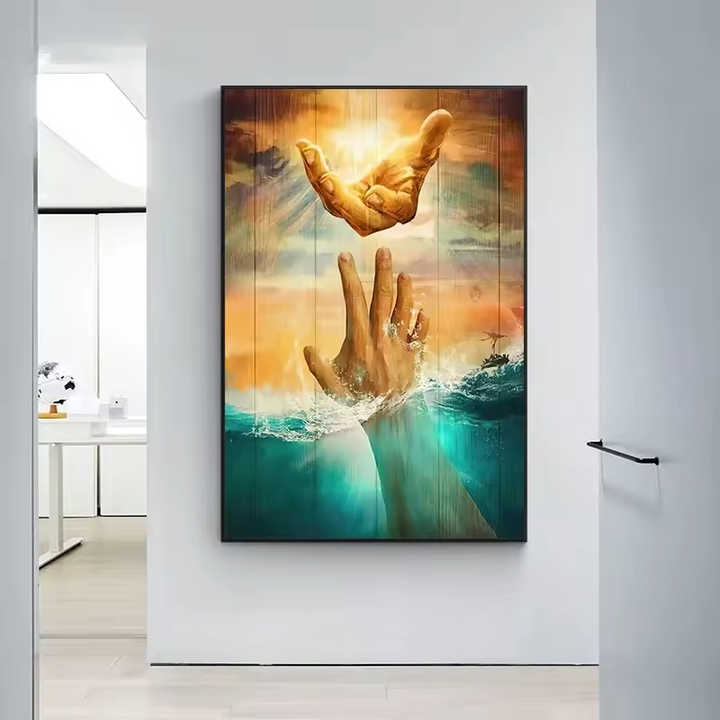 Stile dell'arte moderna - Gesù mi porge la mano. Dipinto a olio su tela. Dipinto decorativo da parete per la casa cristiana.