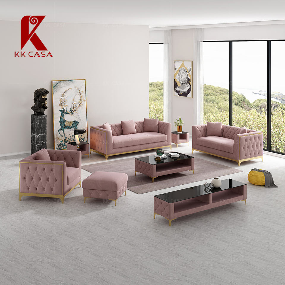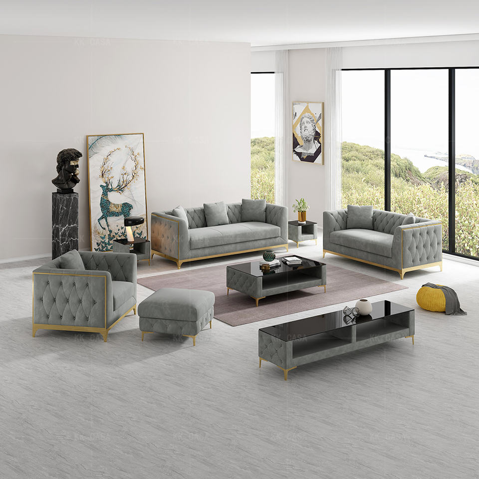 Modernisti Nordic confortevole soggiorno in velluto set di divani in tessuto multicolore con fibbia piena in oro Base gamba completa 1 + 2 + 3 divano