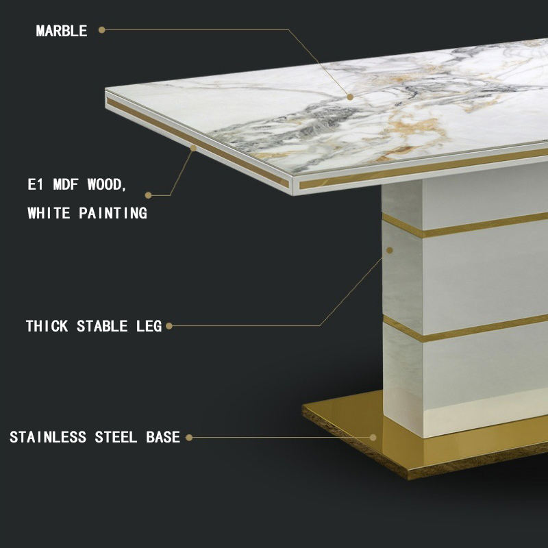 Set da pranzo contemporaneo Modhofi in marmo, con sedie a coda di sirena, adatto per appartamenti familiari da 6-8 persone.
