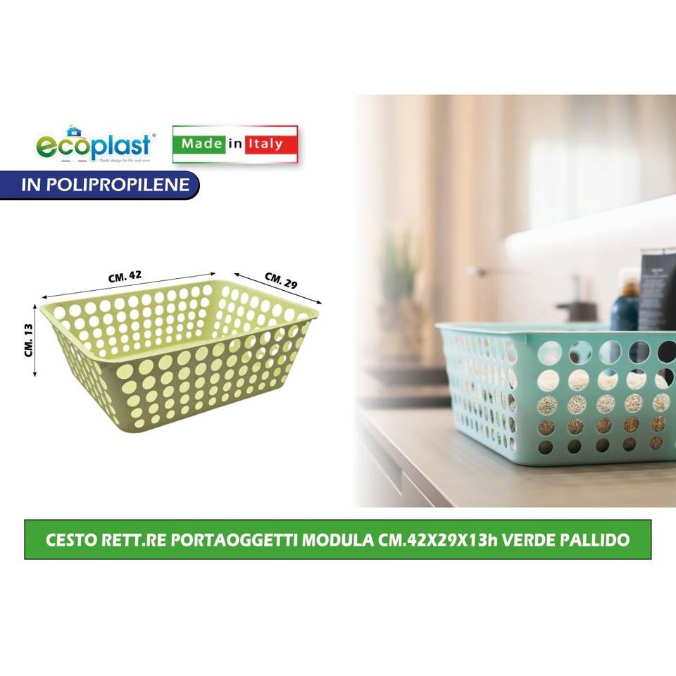 Cestino Portaoggetti Modula Verde Chiaro 42x29x13h con Design Resistente e Pratico