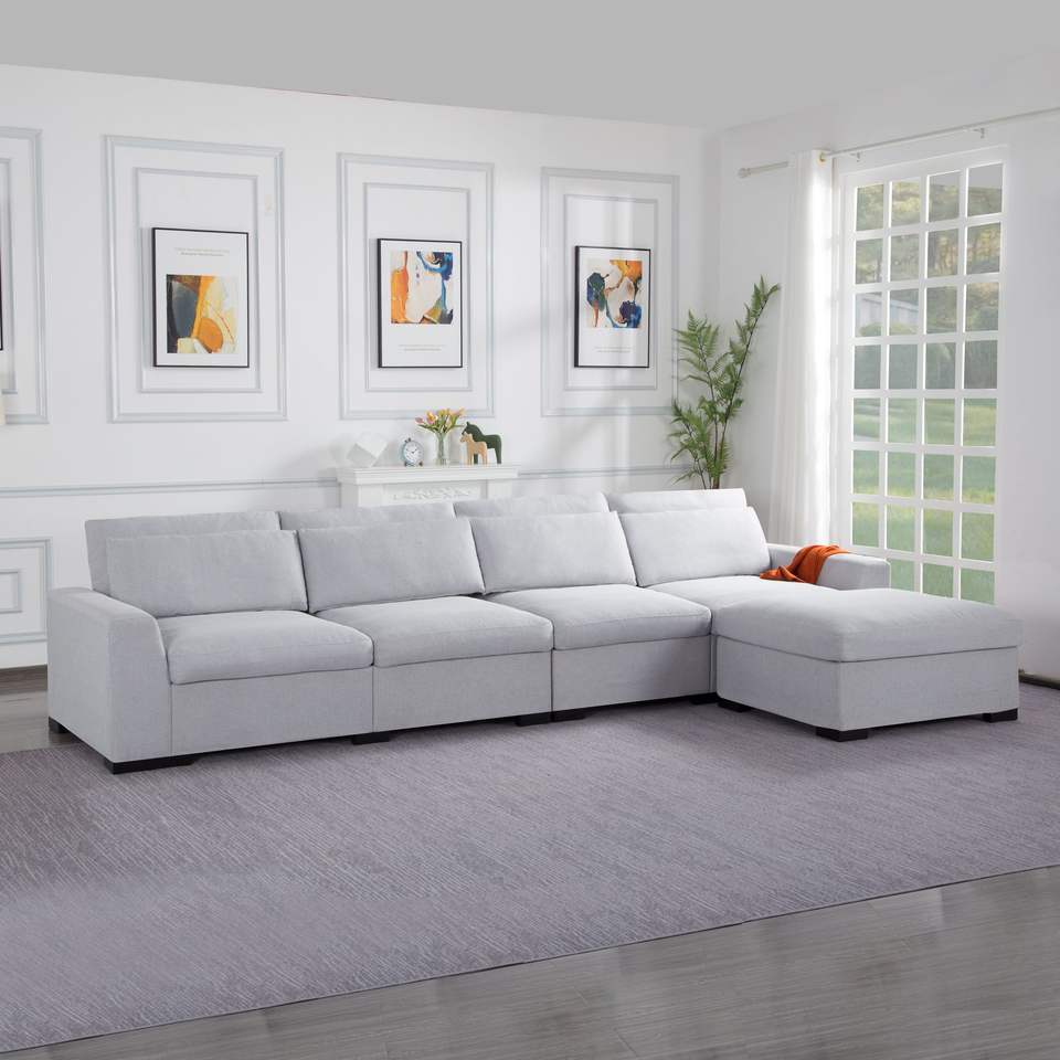 Divano Componibile Modulare 149 con Pouf, Elegante Set per Soggiorno