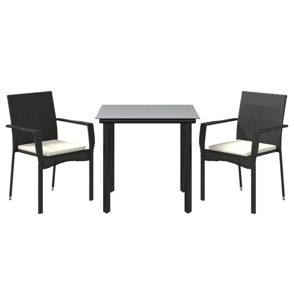 Set da Pranzo Modulare da Giardino in Polyrattan Nero per 2 Persone, Arredamento da Esterno dal Design Contemporaneo con Struttura in Metallo