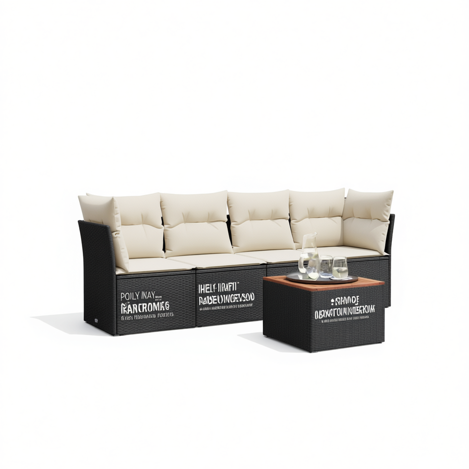 Set Divano da Giardino Modulare in Polyrattan Nero a 4 Posti, Arredamento da Esterno dal Design Contemporaneo