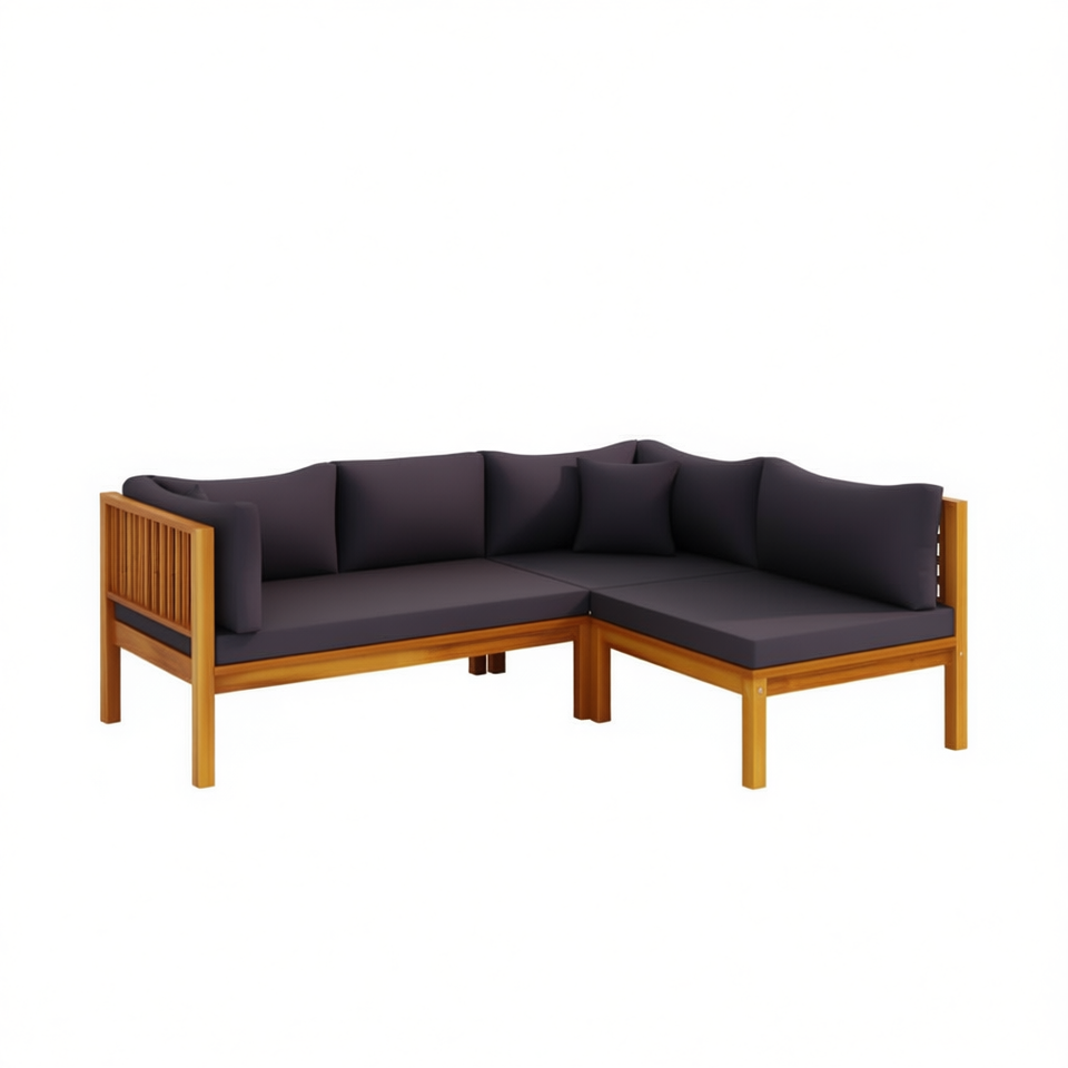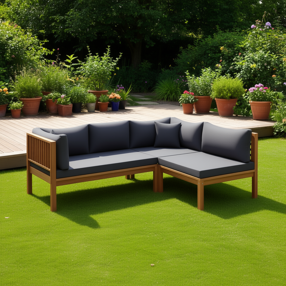 Divano Angolare Modulare in Legno di Acacia Grigio Scuro, Set di Mobili da Giardino, Design Contemporaneo con Cuscini in Schiuma ad Alta Densità