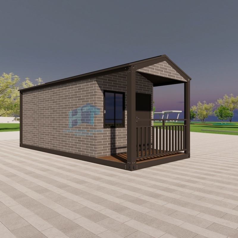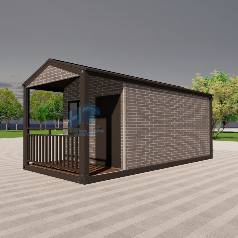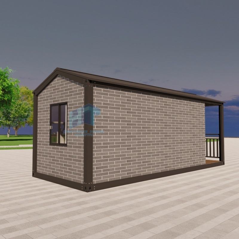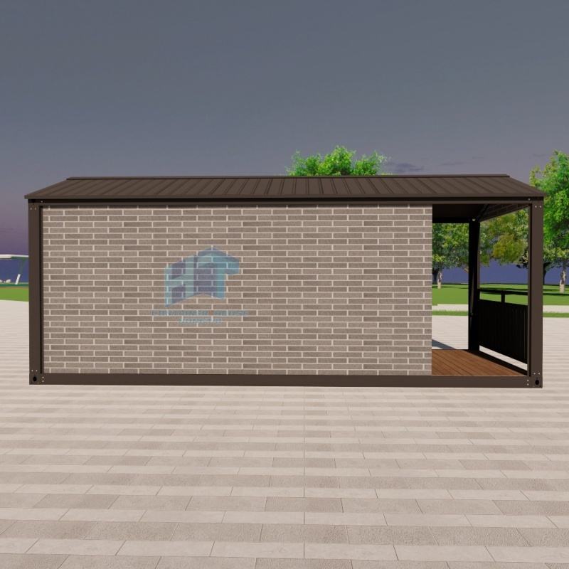 Cabina da giardino modulare prefabbricata per ufficio e soluzione di stoccaggio con muro di mattoni grigi e struttura in metallo casa del contenitore vivente all'aperto