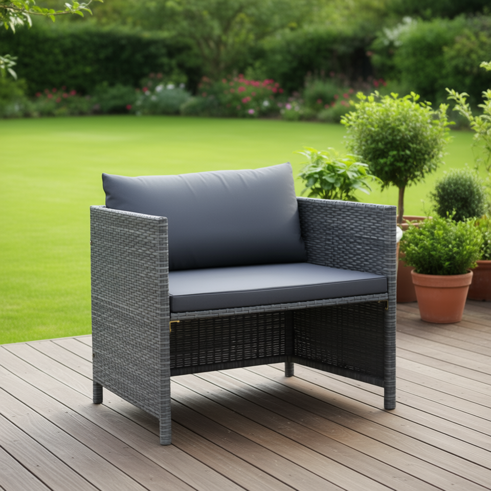 Divano da Giardino Modulare in Rattan PE Grigio, Poltrona Singola per Esterni, Design Contemporaneo Resistente ai Raggi UV