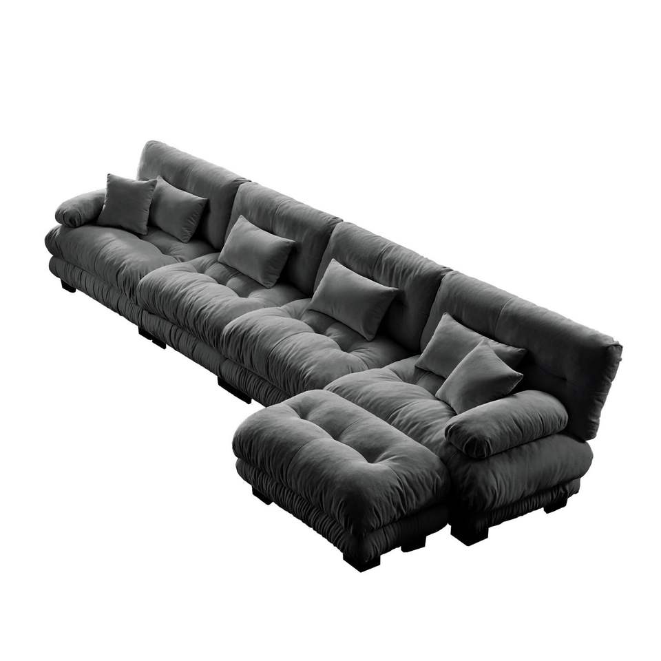 Divano Componibile Modulare Confortevole a 4 Posti a Forma di L con Pouf Convertibile Combinazione Libera per Arredamento Soggiorno