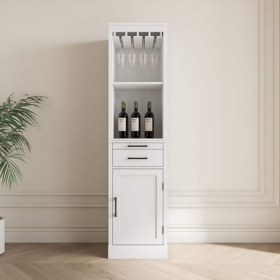 Mobile Bar Modulare per Vini in Colore Bianco con Vetrina Buffet e Credenza per Stoviglie per Sala da Pranzo