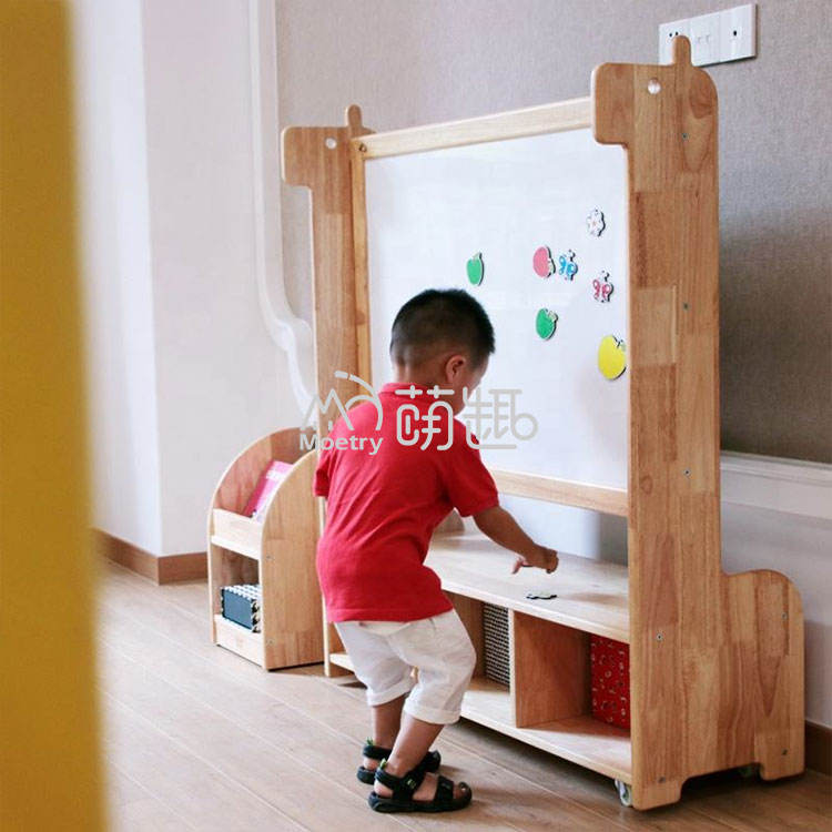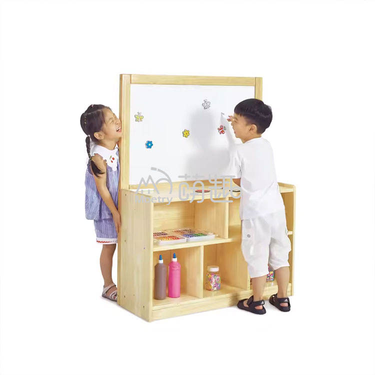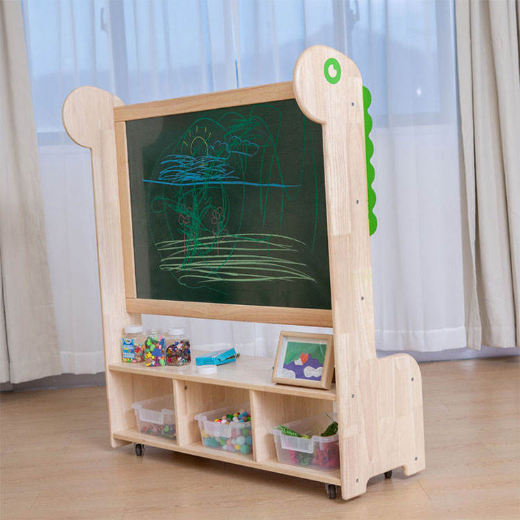 Moetry Cute Dinosaur Theme Double Sided Wooden Art Easel with Storage Cabinet Montessori Furniture Kids Blackboard Cabinet