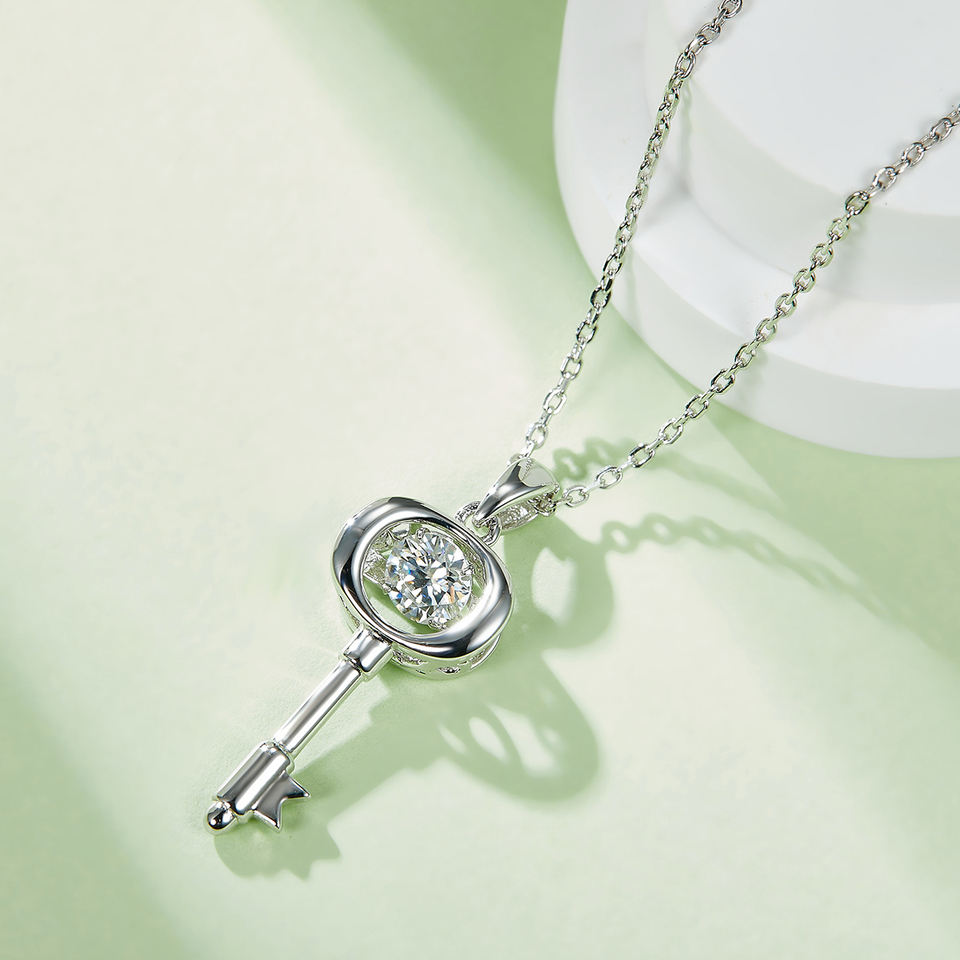 Moissanite Diamond Pendant Necklaces 0.5 CT Dancing Floating Key Shape 925 Sterling Silver Dance Necklace for Women Wife Jewelry