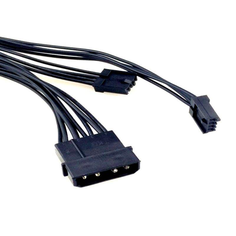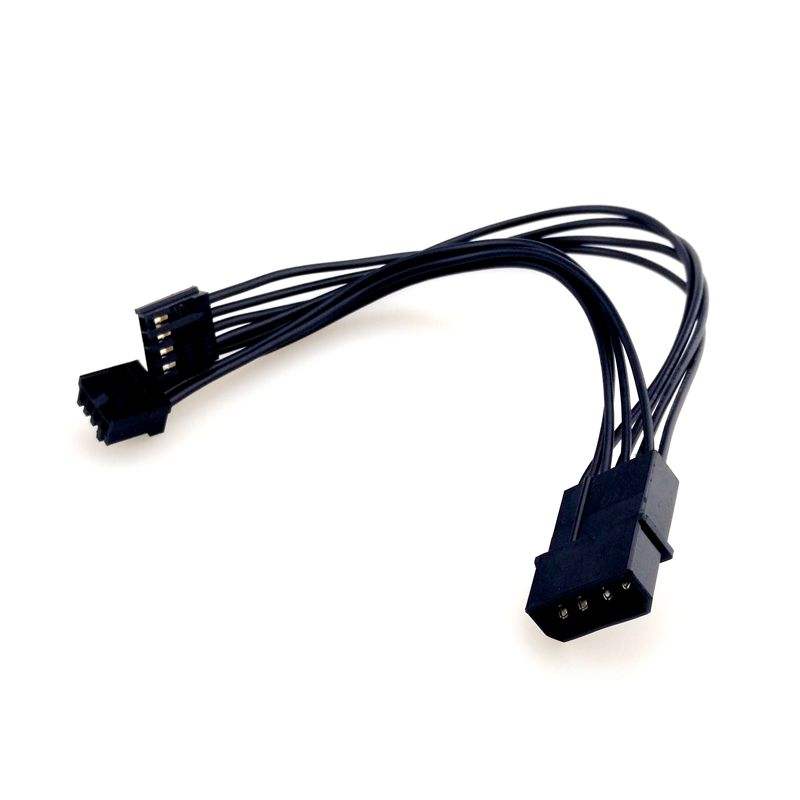 Connettore di alimentazione da Molex a doppio floppy. Connettore per unità floppy con cavi e connettori neri. Cavo di collegamento per pinout del sistema di fissaggio
