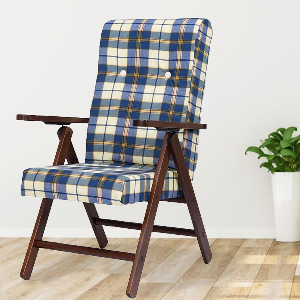 Molisana Elegant Beech Wood Reclining Armchair 61x67x108 cm Blue Tartan Fabric Comfortable Home Relaxation Chair