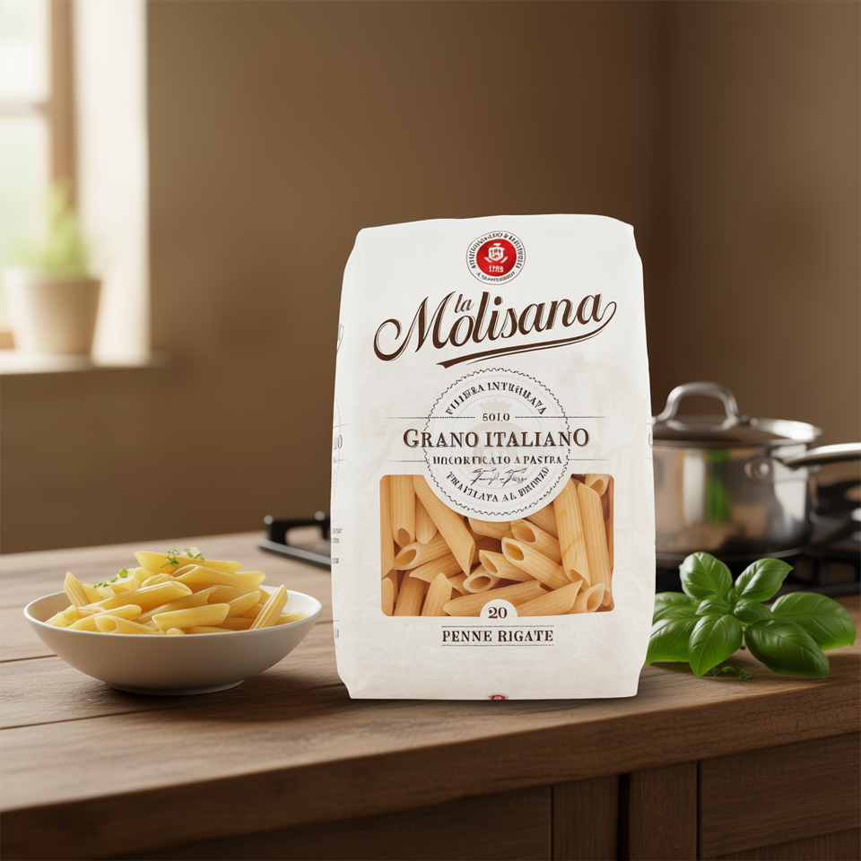 Pasta Molisana N. Penne Rigate di Grano Duro 020 Non Raffinato, Confezione da 24 Pezzi, 500g