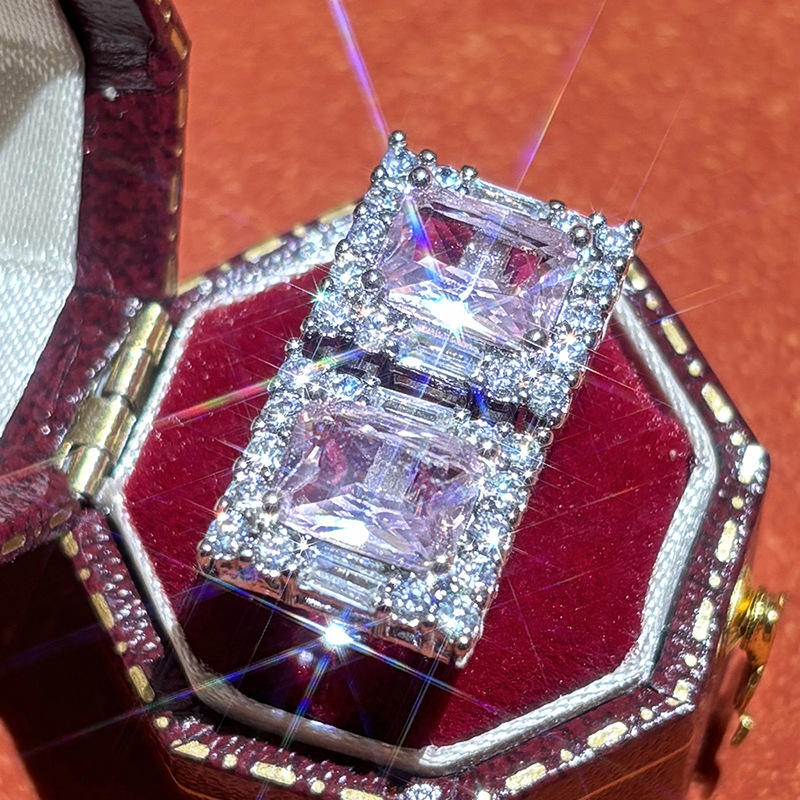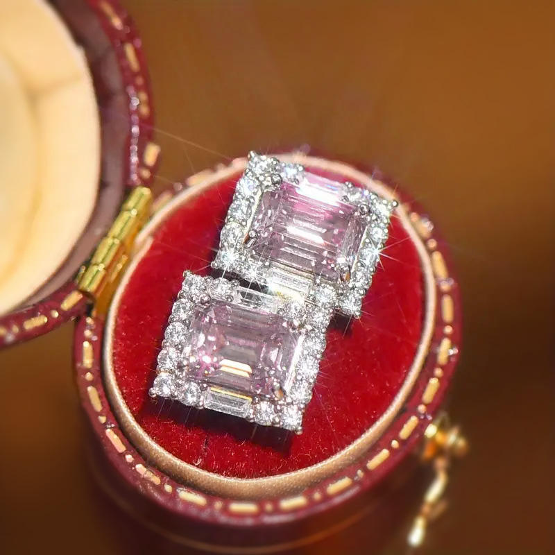 Moliz White Gold Diamond Earrings Emerald Cut Fancy Pink Natural GIA Certified Women's Wedding Classic Style