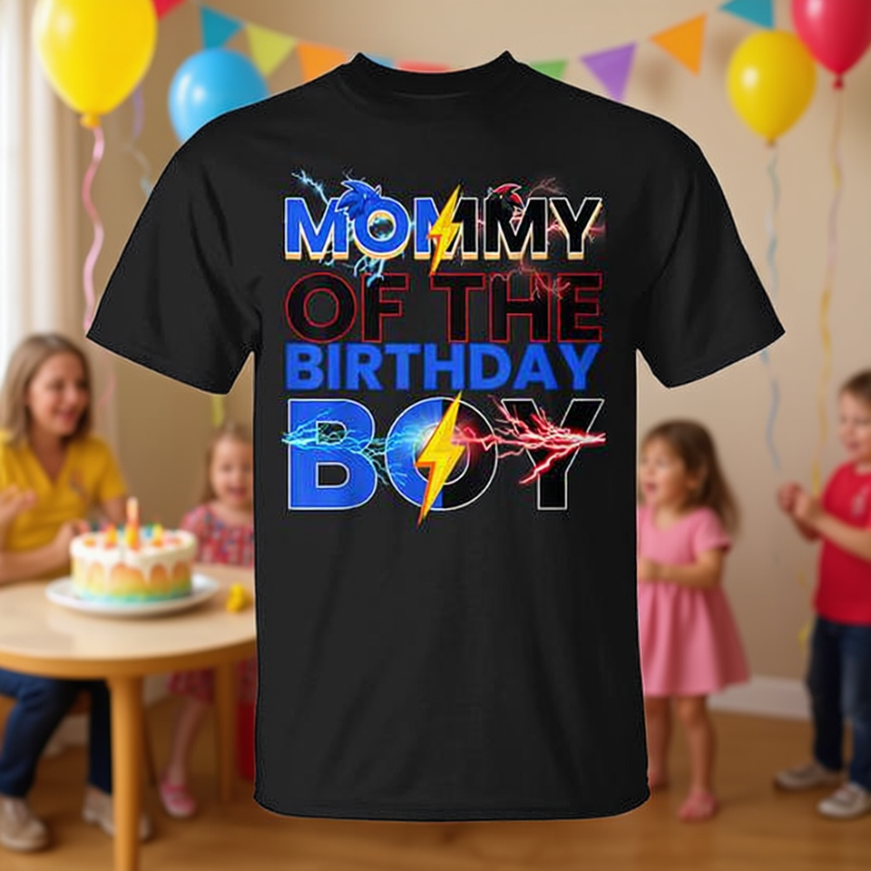 T-shirt Mommy Of The Birthday Boy a tema festa in famiglia, colore nero, taglia adulto