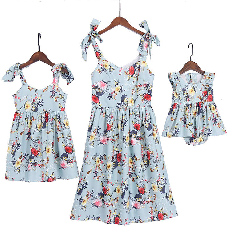 Product Name:Floral Printed Dresses Shoulder Straps Matching Outfits Family Suits